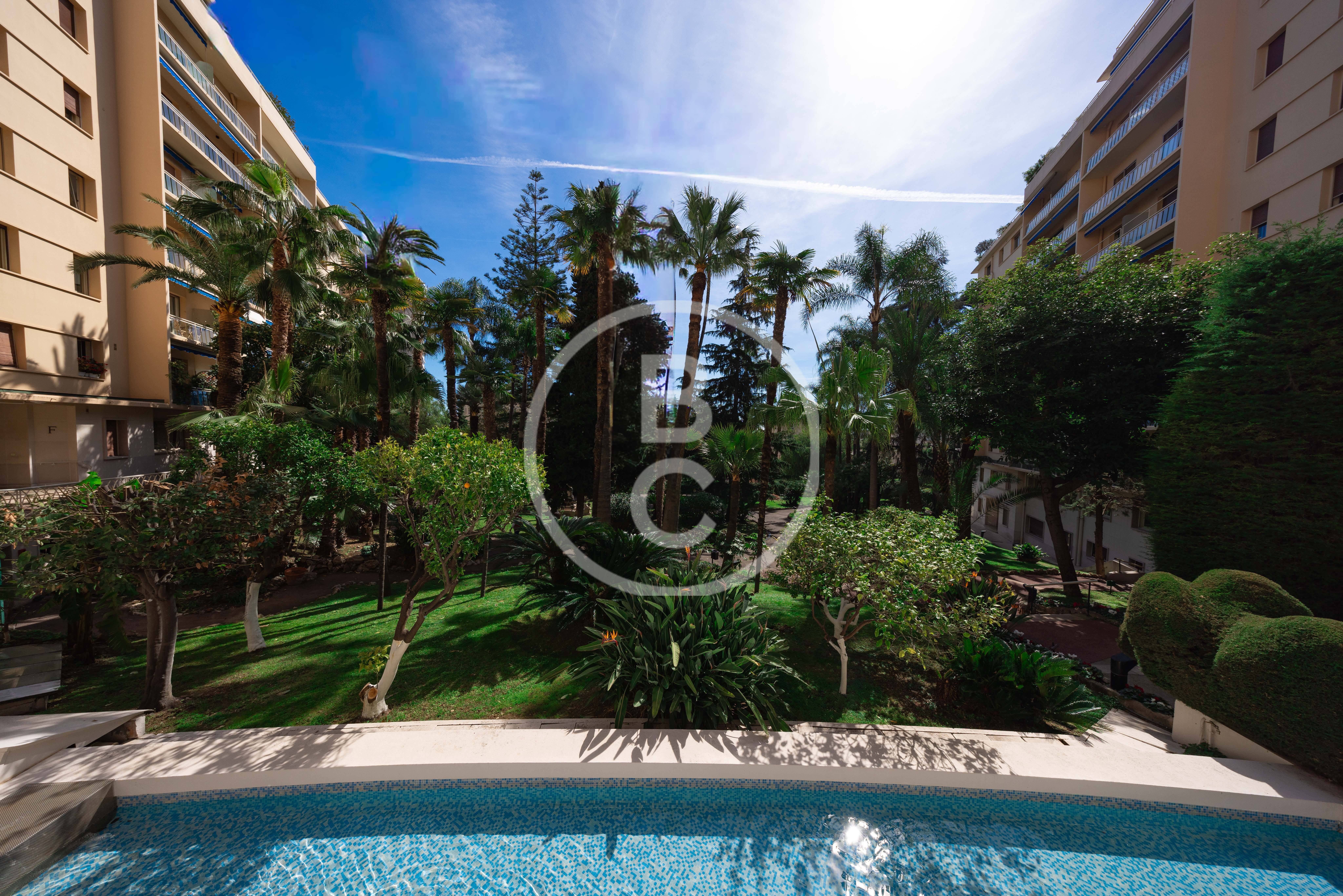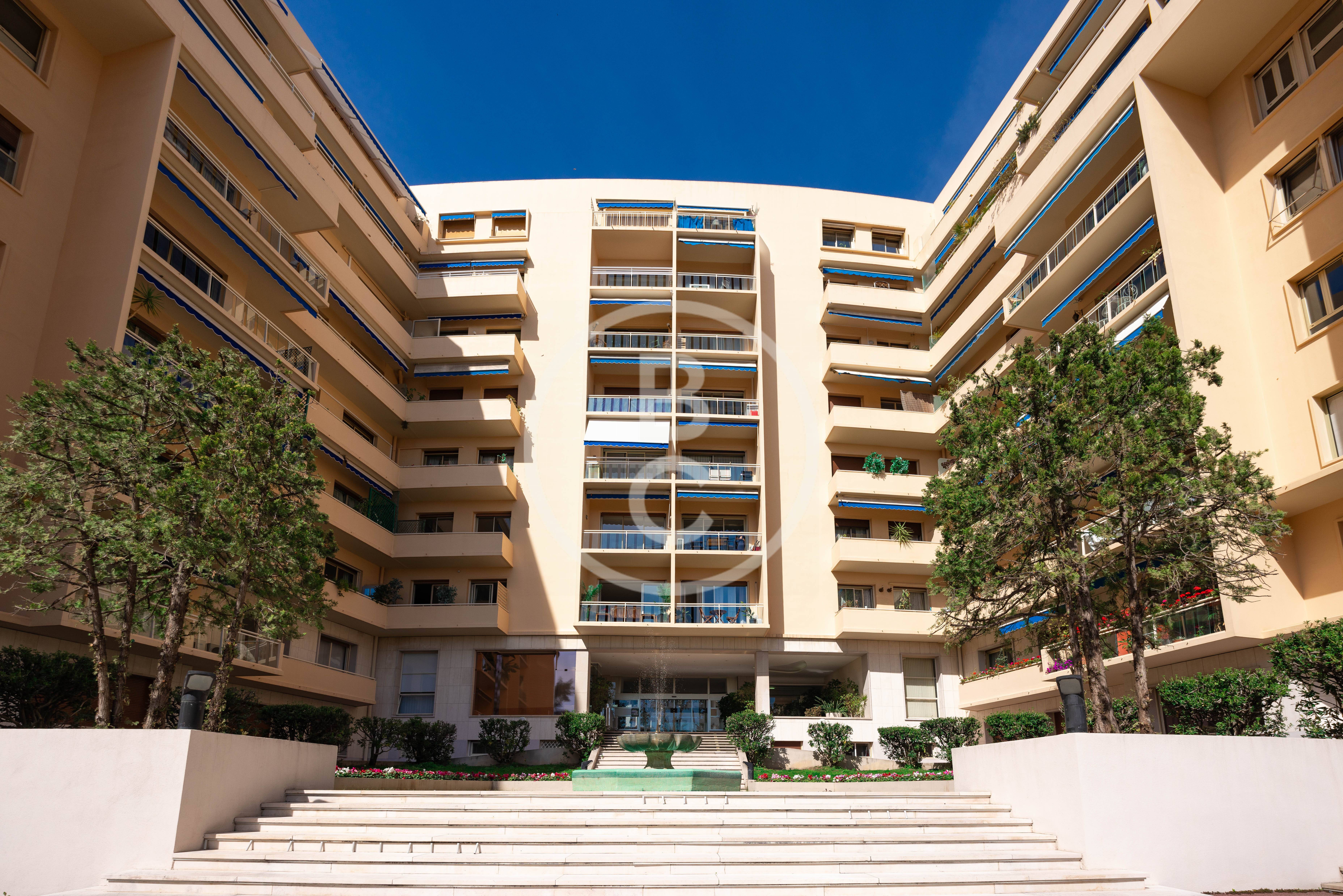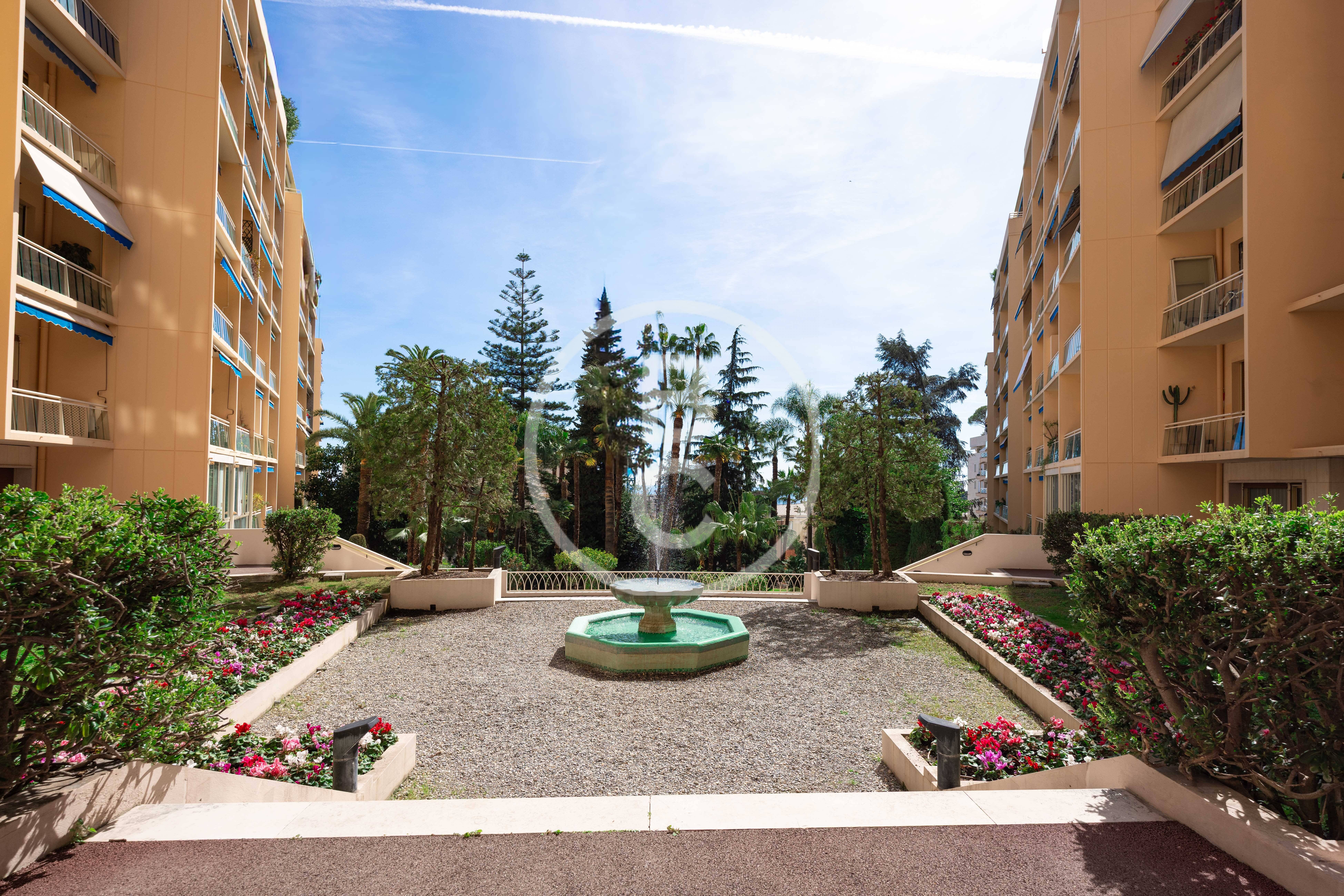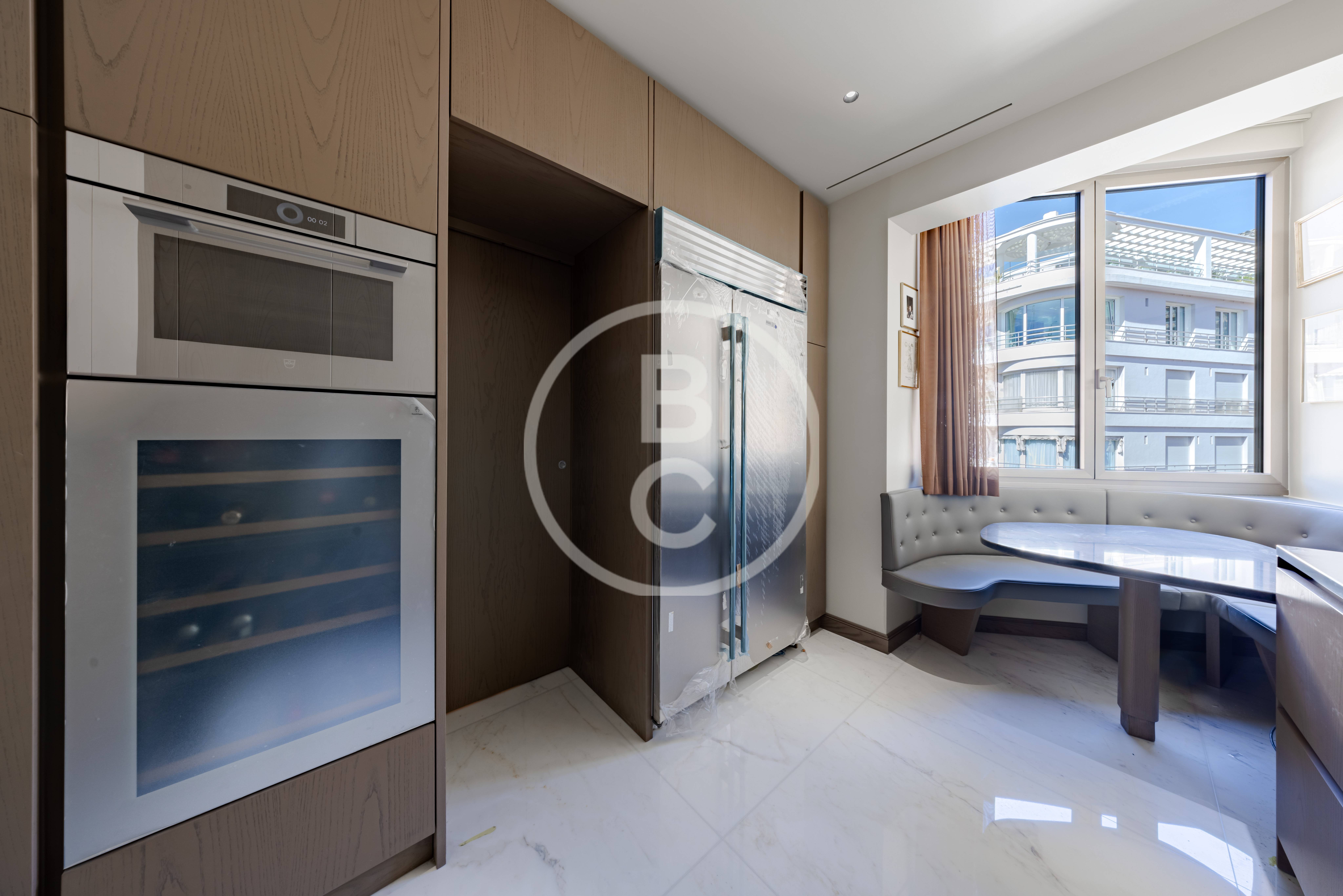 Cet appartement, entièrement rénové avec des matériaux haut de gamme et jamais habité, offre un spacieux double séjour très lumineux avec deux balcons bénéficiant d’une agréable vue mer et jardins.