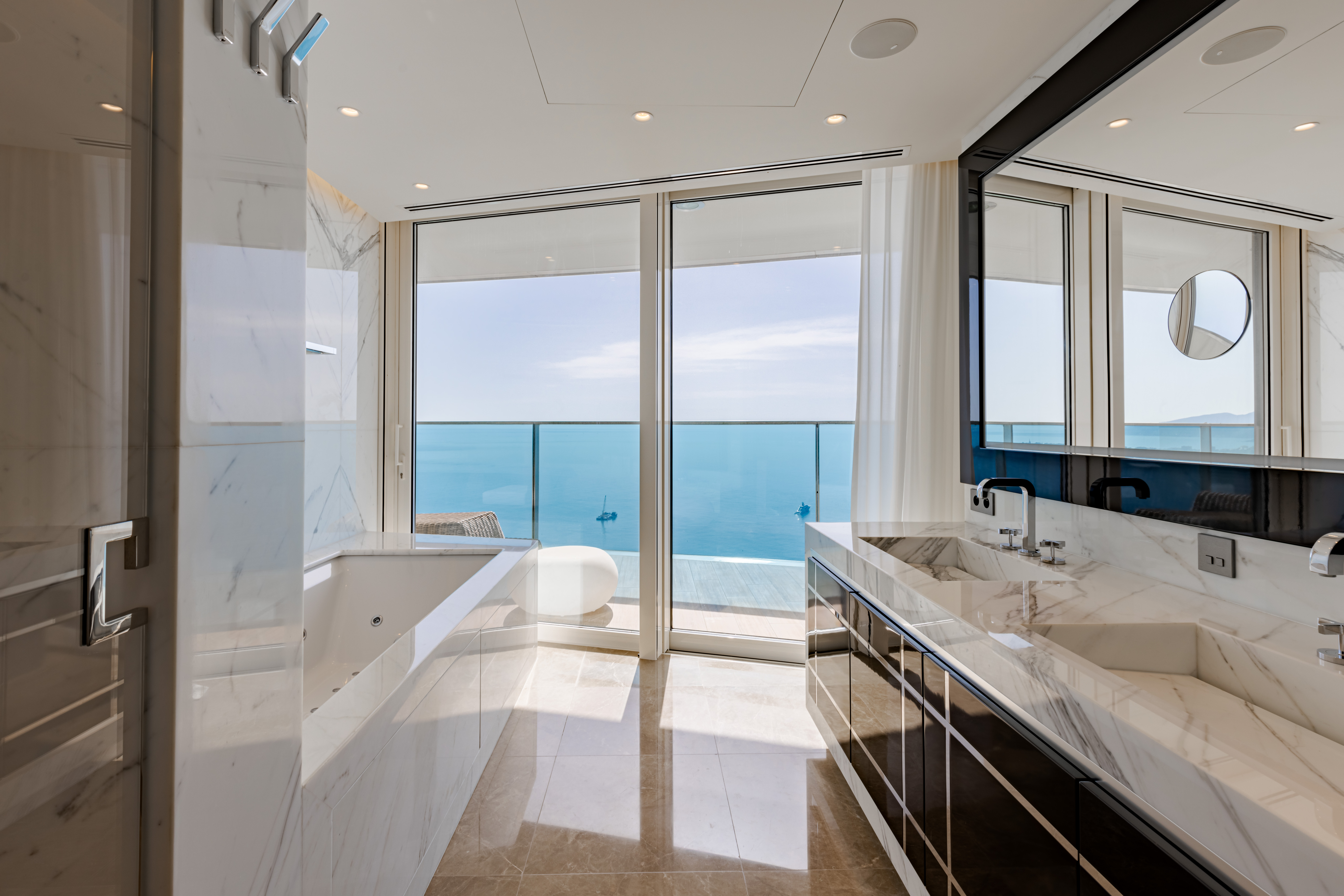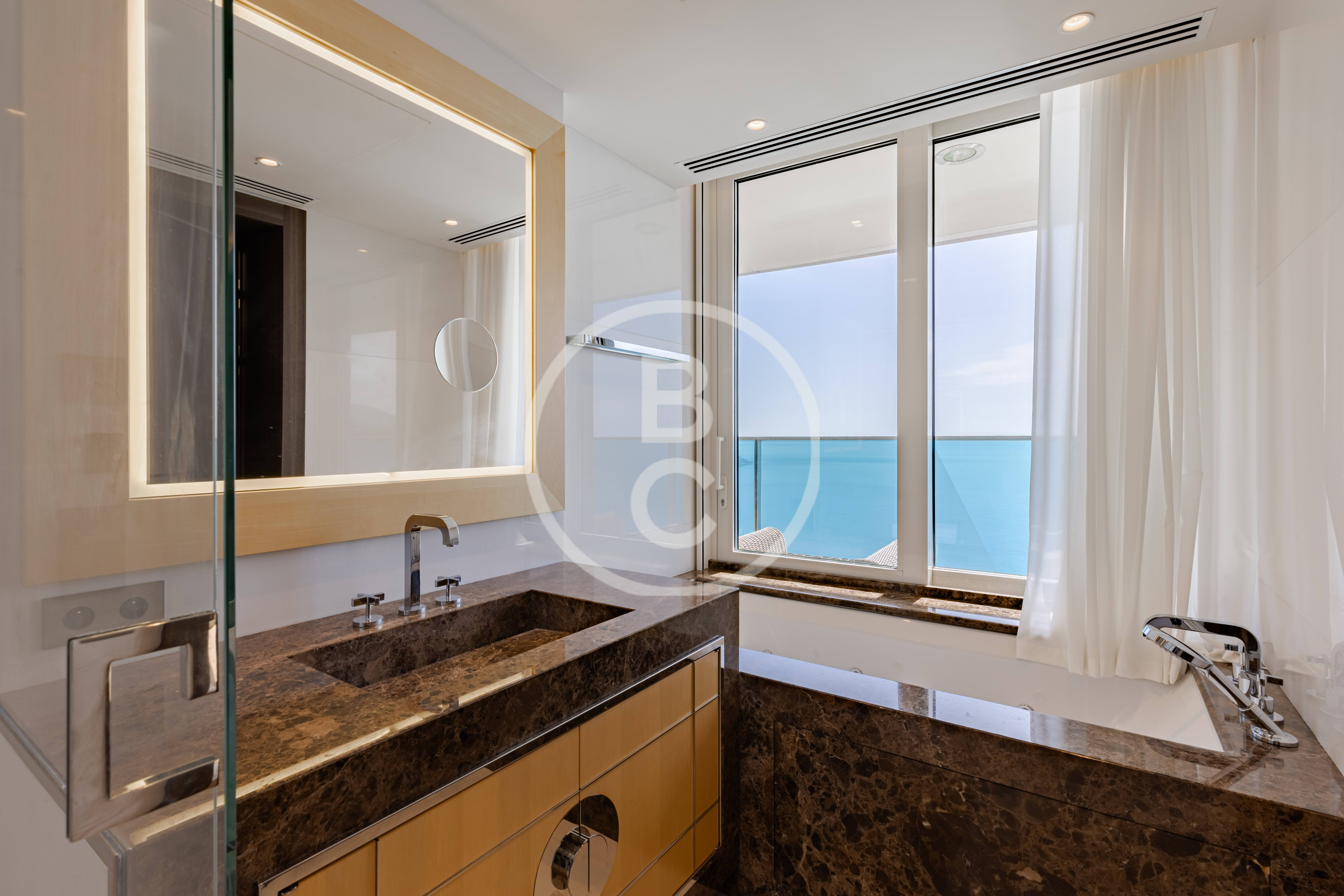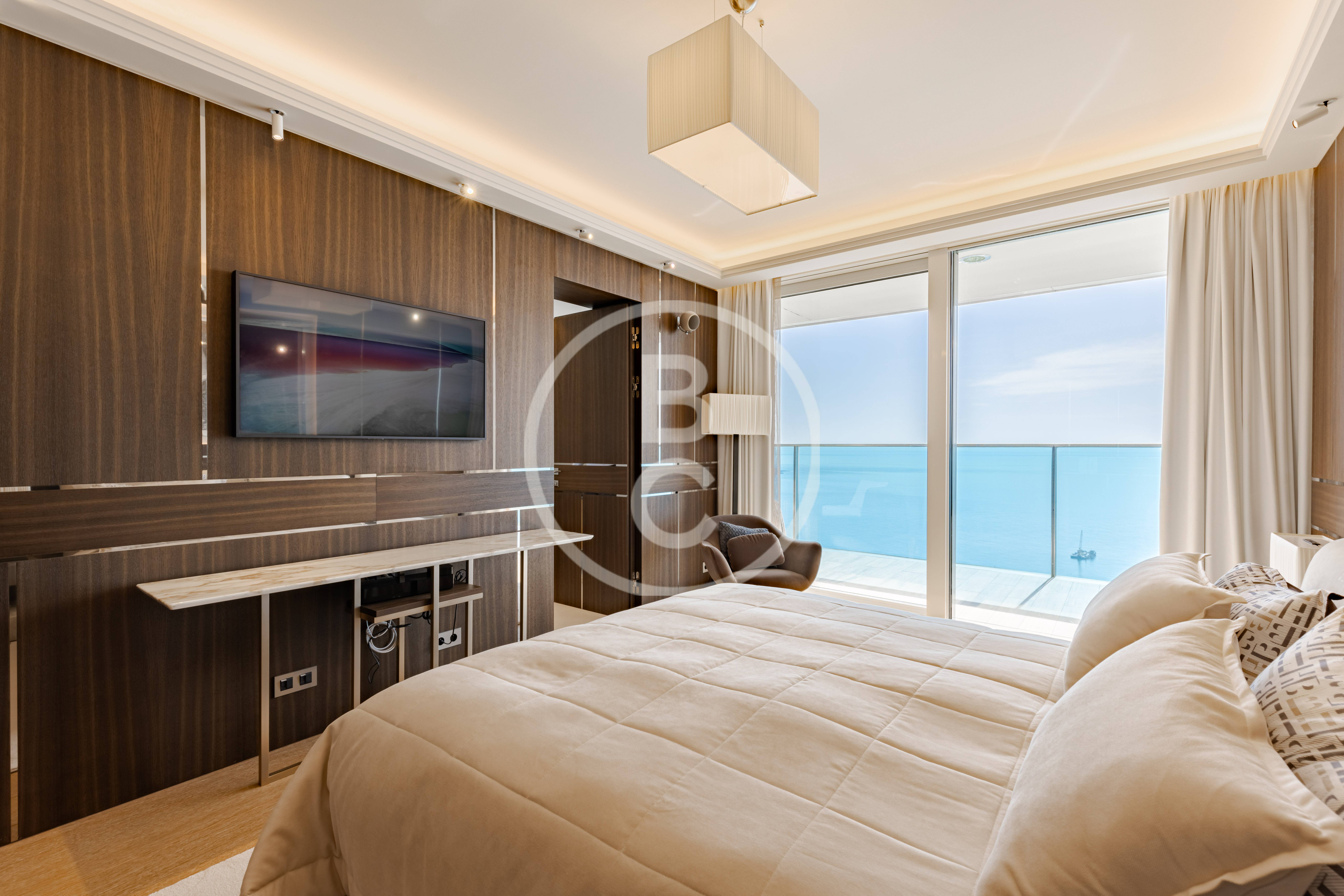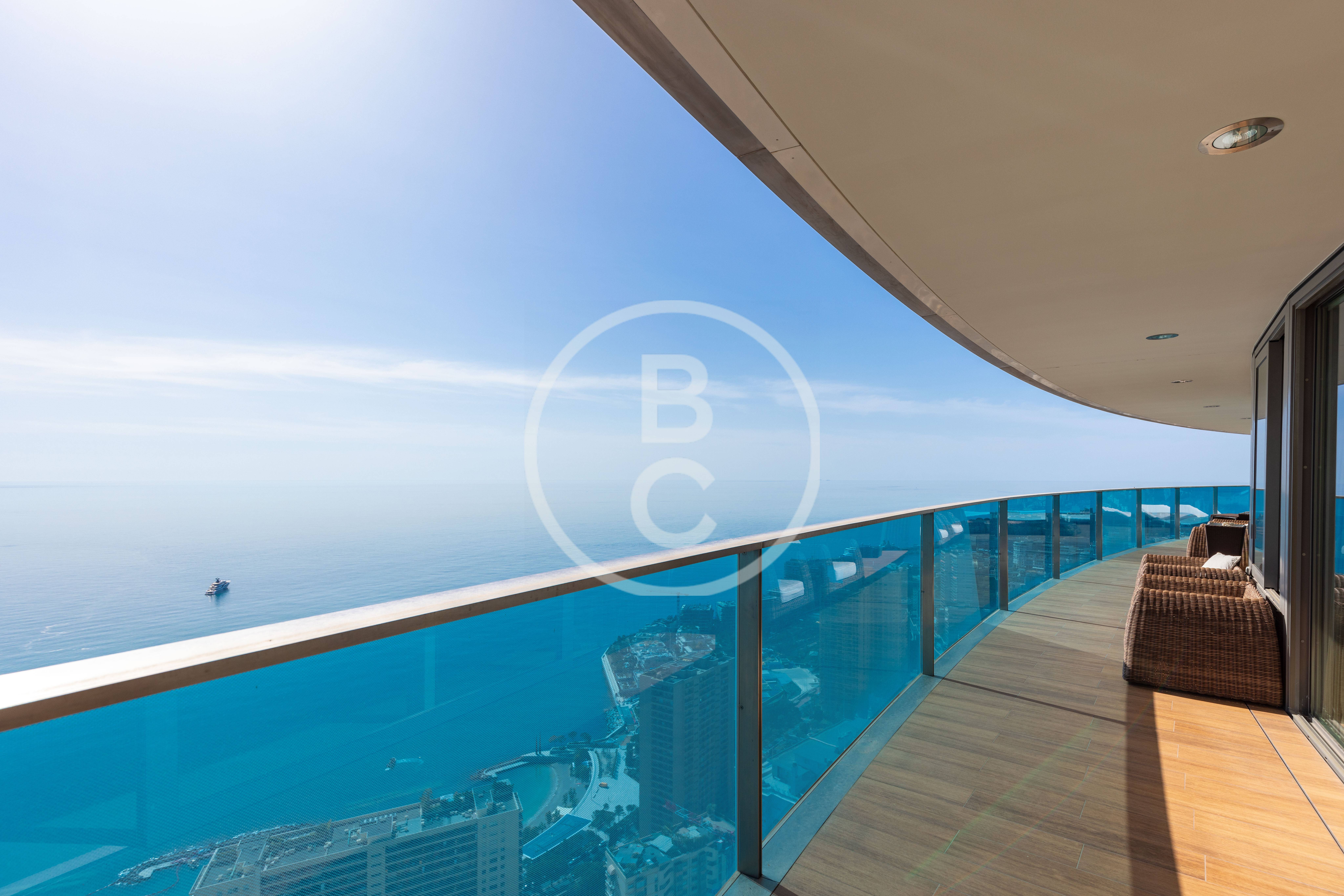 L'appartement offre une vue exceptionnelle, dont vous pouvez profiter depuis toutes les pièces grâce aux superbes baies vitrées. Ces dernières inondent également le bien de lumière. La terrasse présente une vue panoramique somptueuse, depuis l'Italie jusqu'au Rocher. Exposée au sud, elle est baignée de soleil tout au long de la journée.
