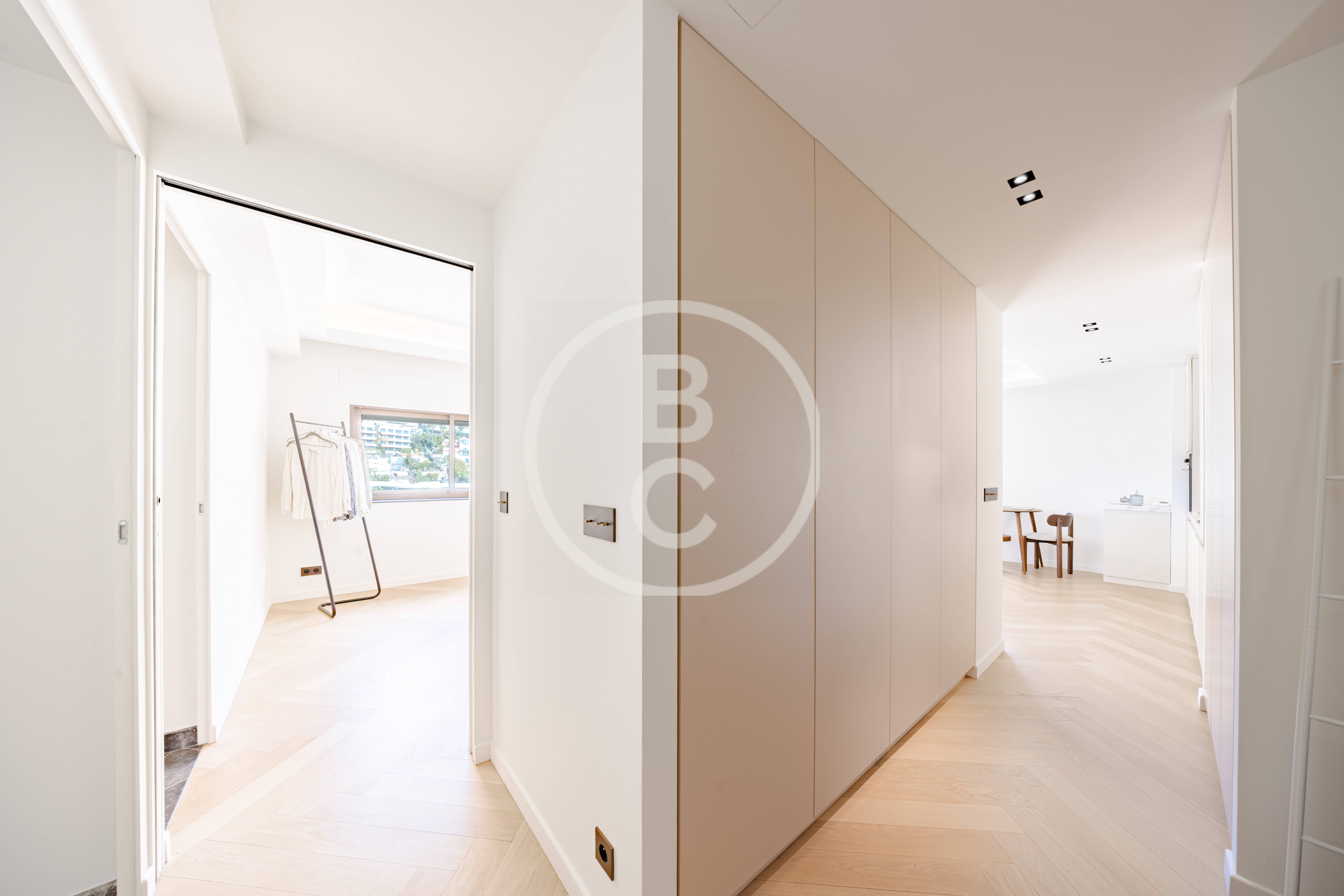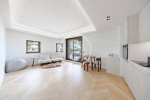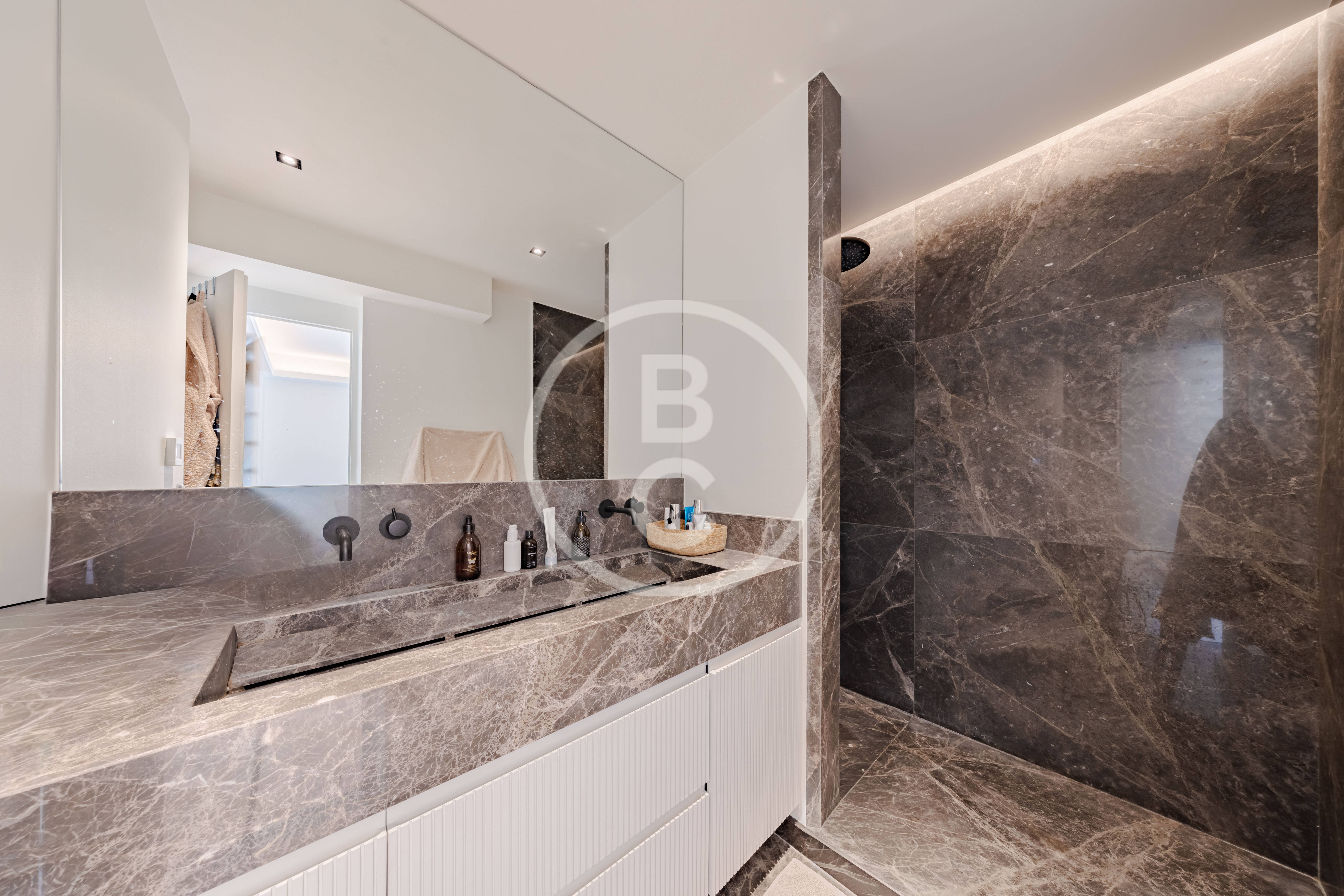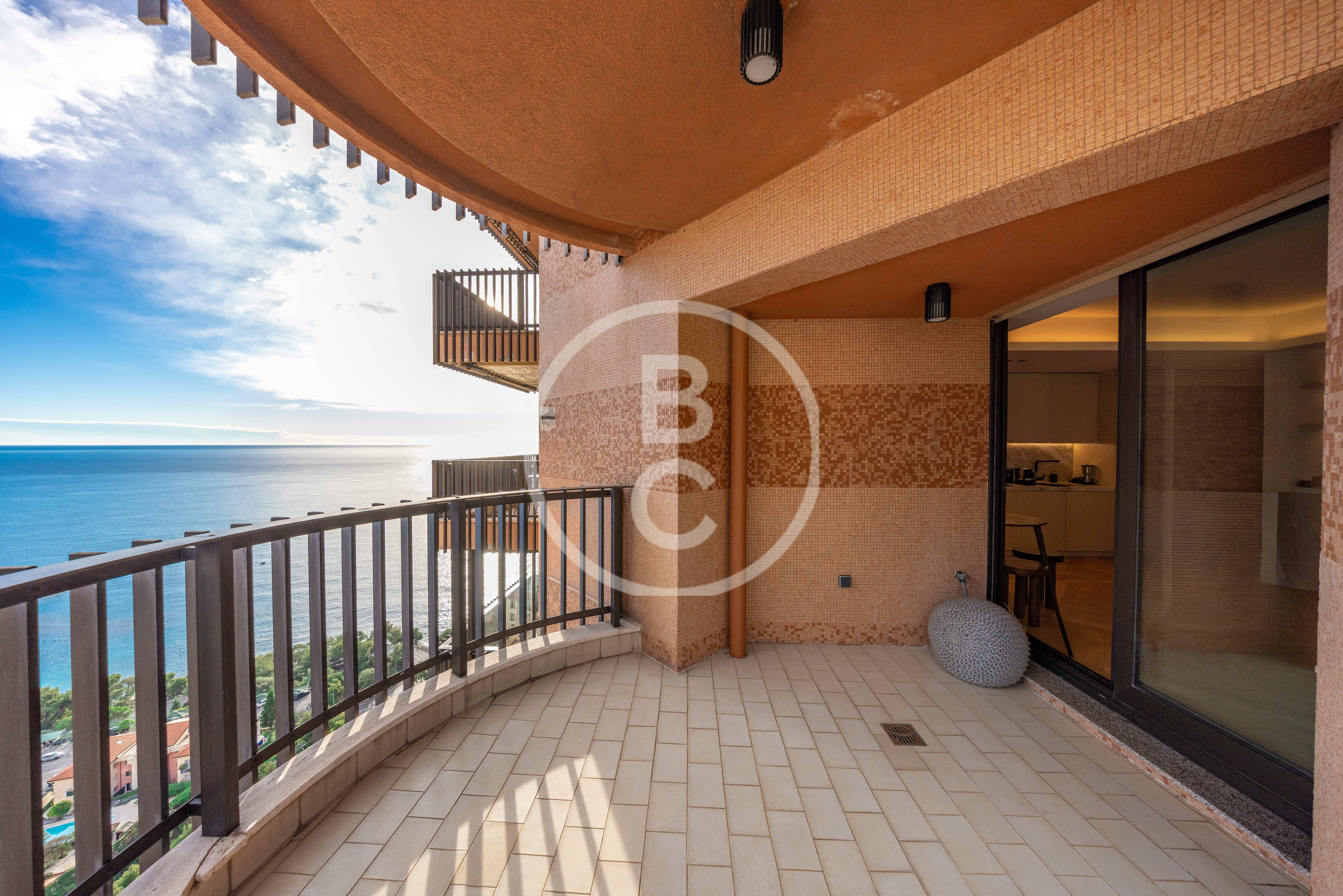 Somptueux deux pièces entièrement rénové avec des matériaux de haute qualité et des finitions raffinées. Il offre une entrée avec un couloir et de rangements sur mesure, s'ouvrant sur un somptueux séjour agrémenté d'une cuisine ouverte entièrement équipée. La chambre, avec sa luxueuse salle de bains attenante et son dressing sur mesure, offre un confort absolu. Une vaste terrasse dévoile une vue imprenable sur la mer et les majestueuses montagnes environnantes.