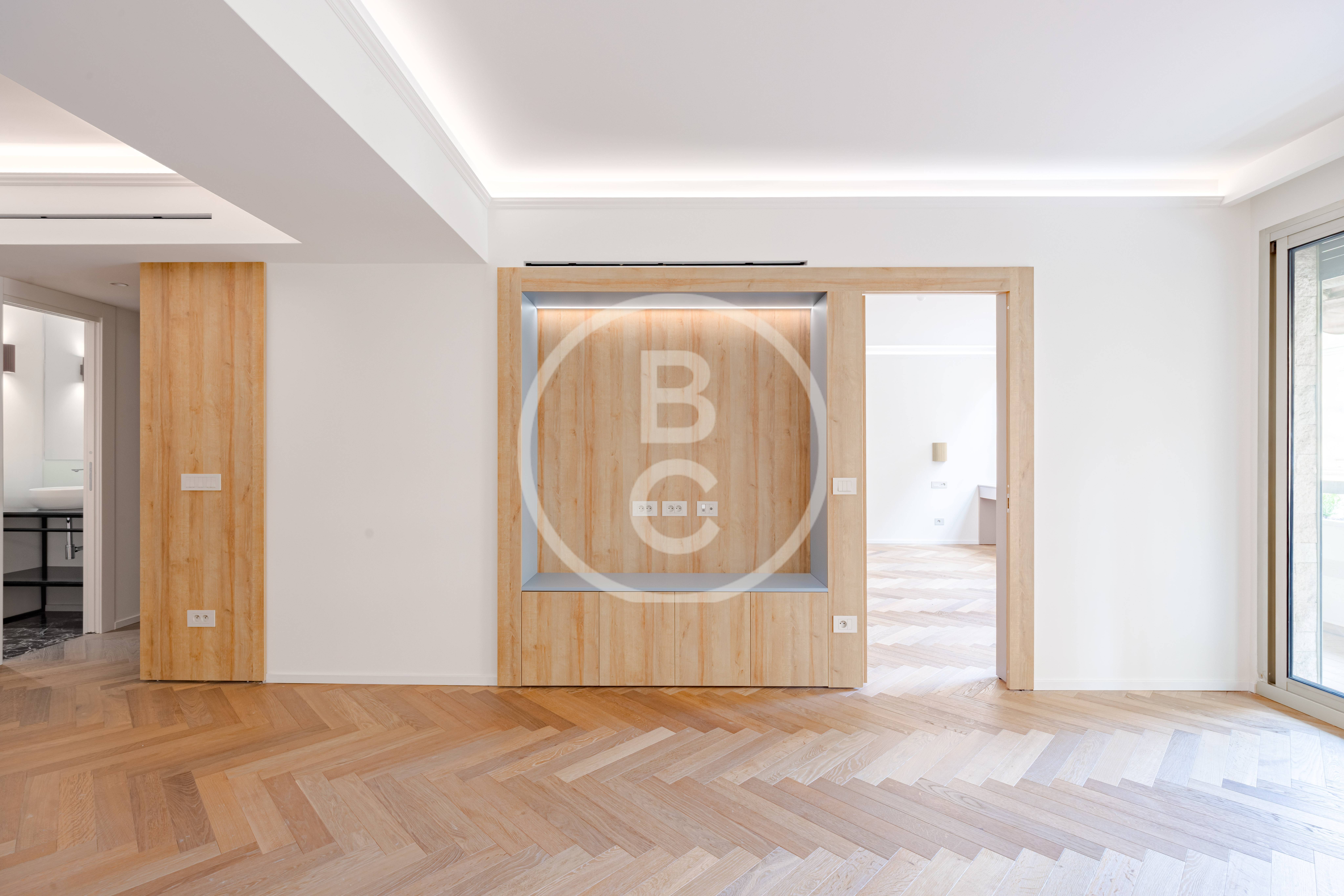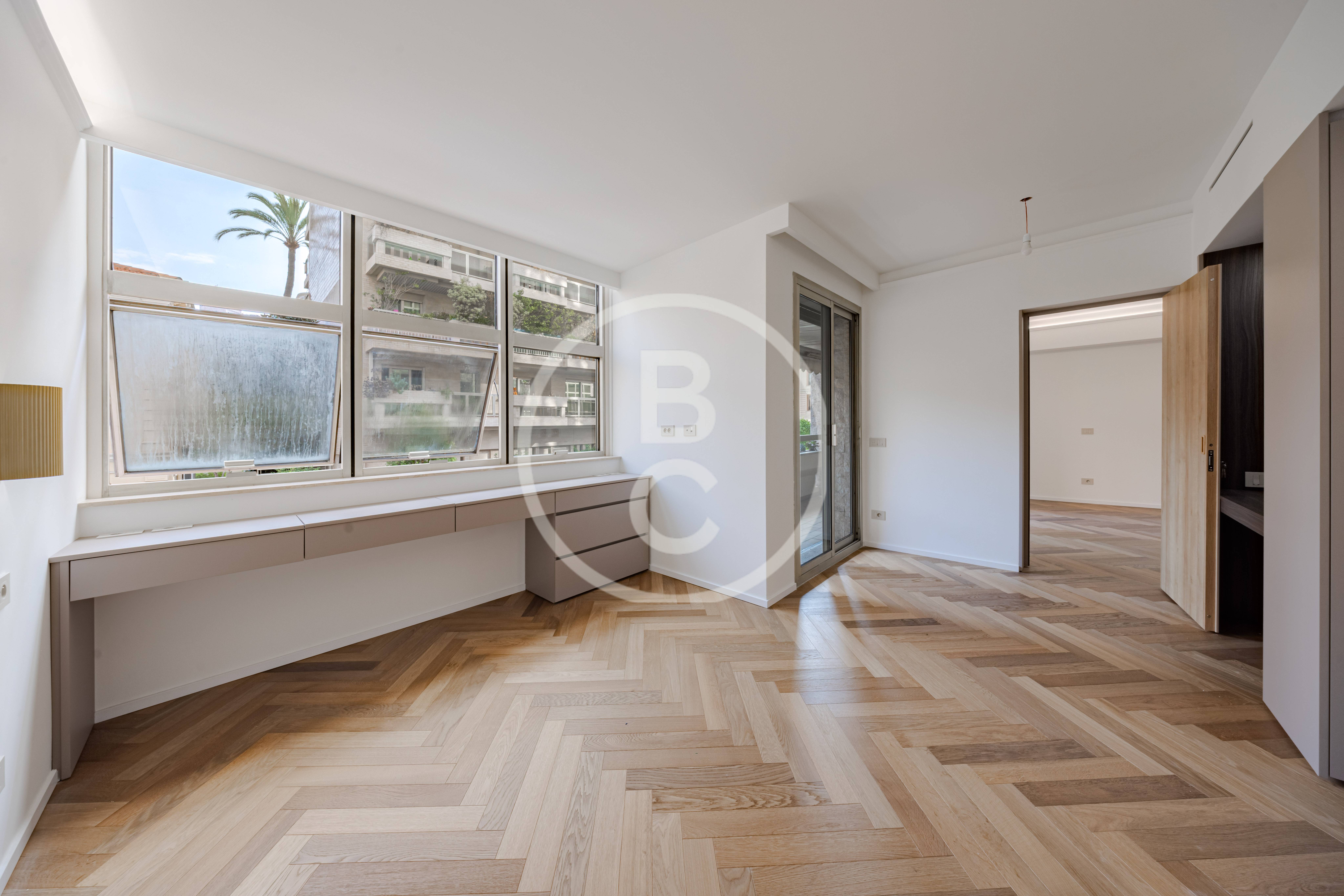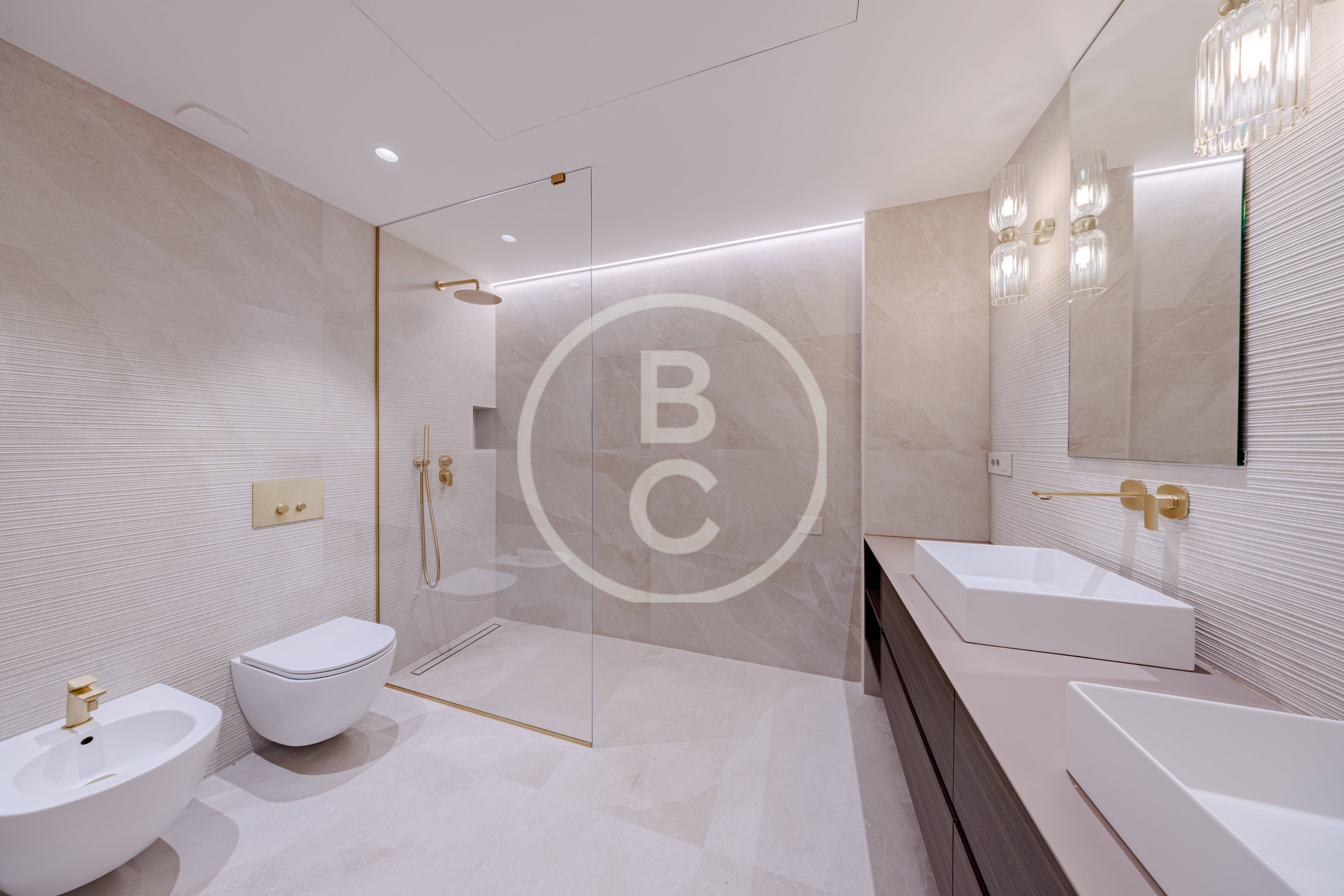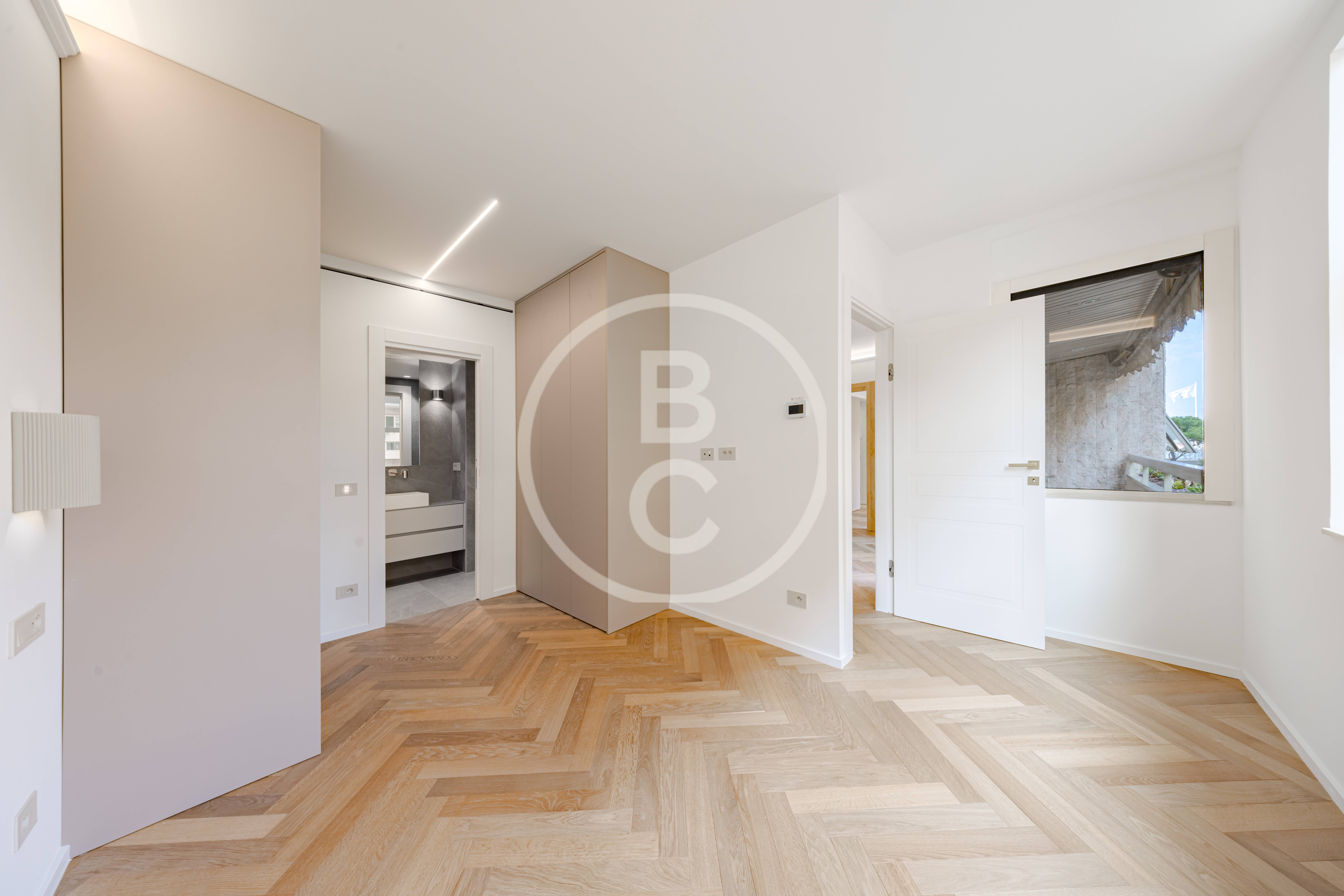 Questo ampio appartamento offre spazi generosi e una distribuzione funzionale. È composto da un ingresso con armadi a muro, una cucina completamente attrezzata, due camere da letto con due bagni e una terrazza che prolunga piacevolmente la zona giorno.
