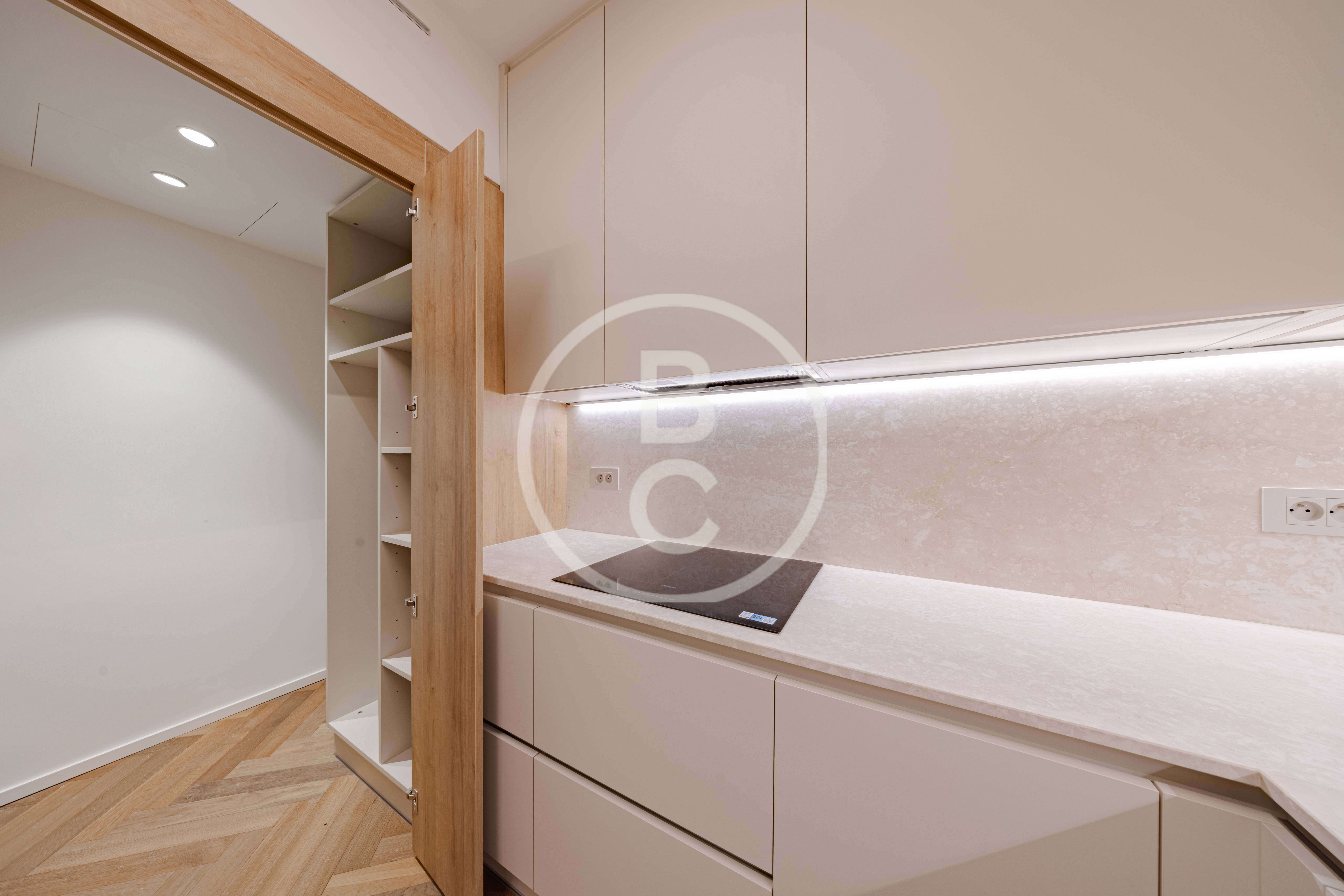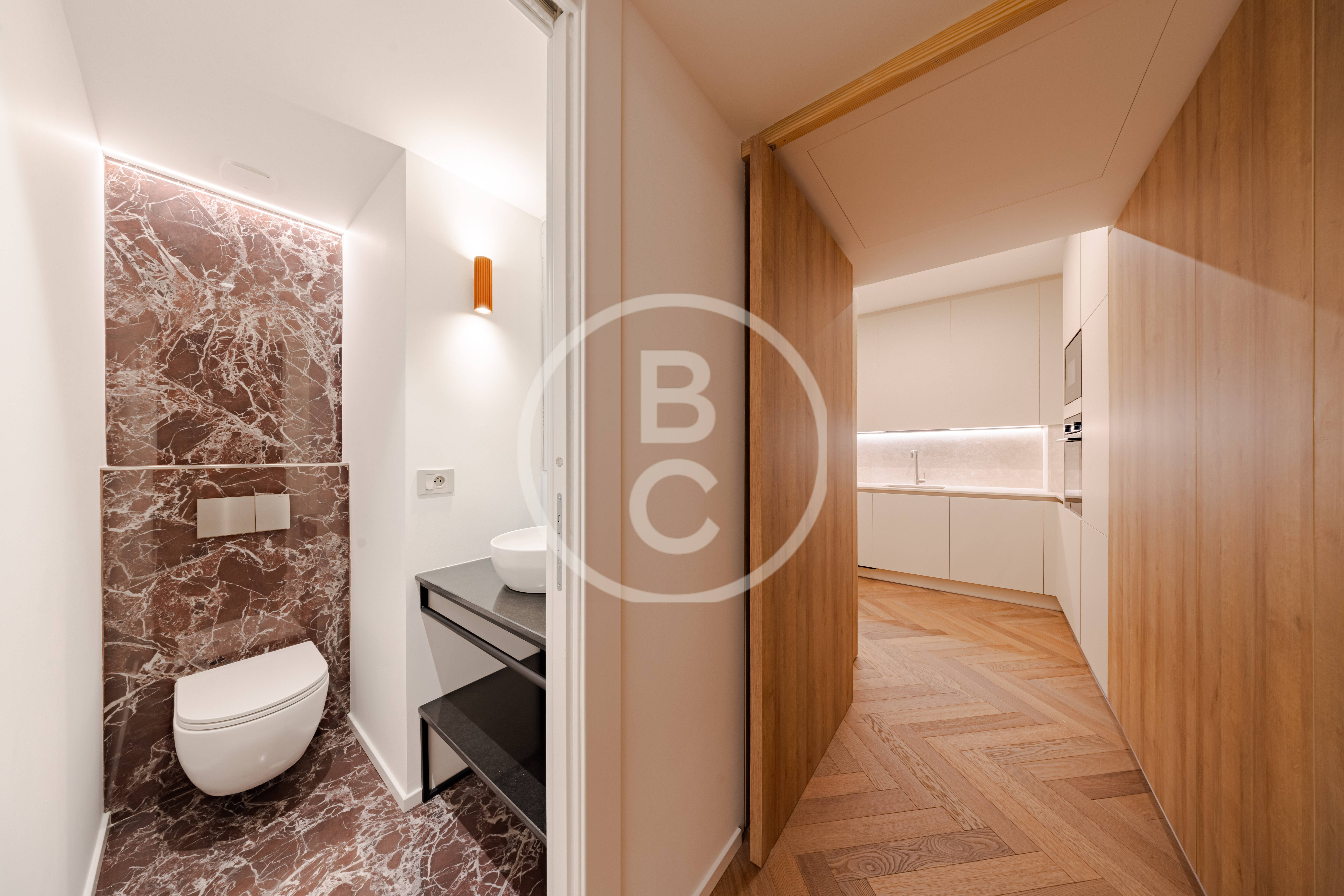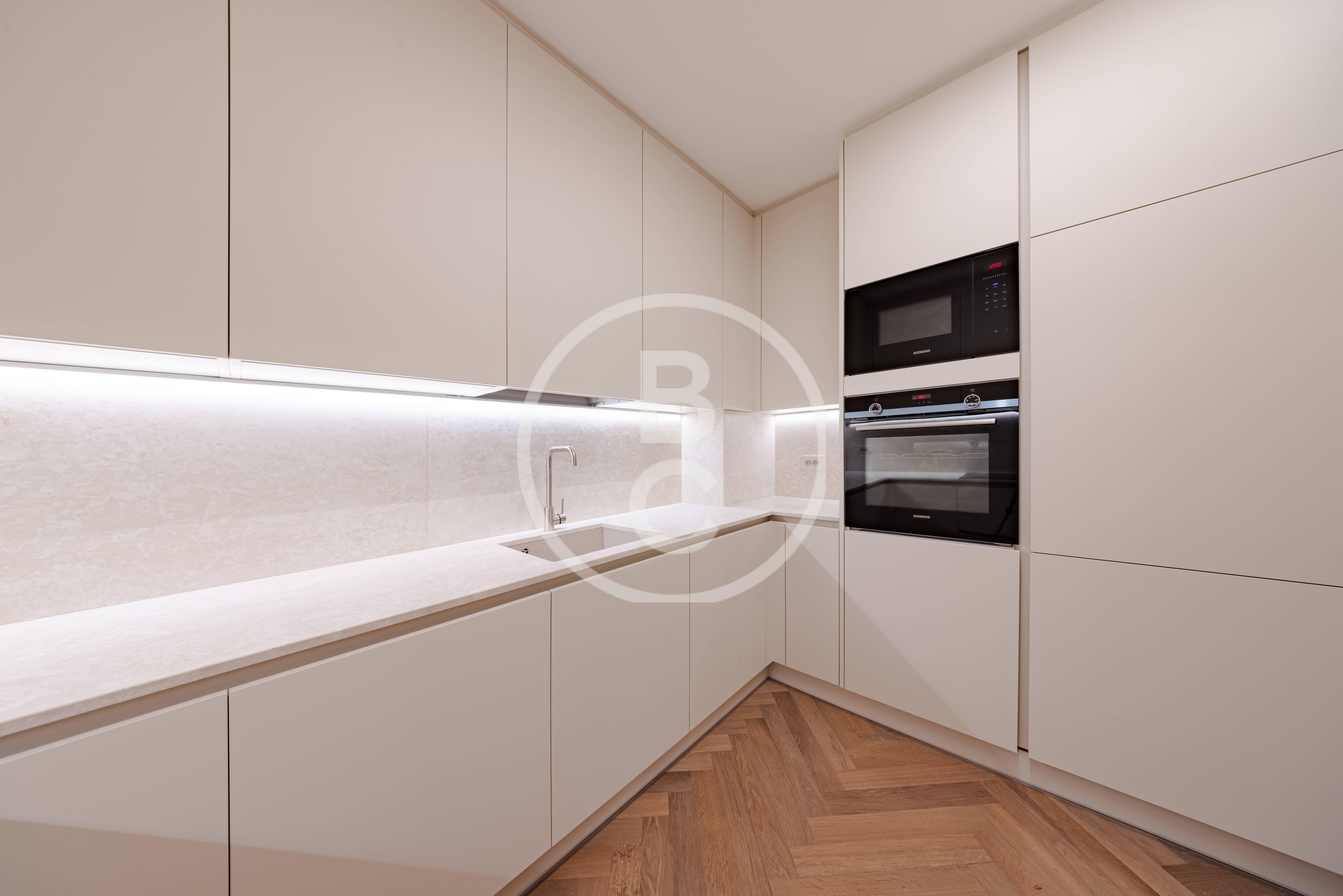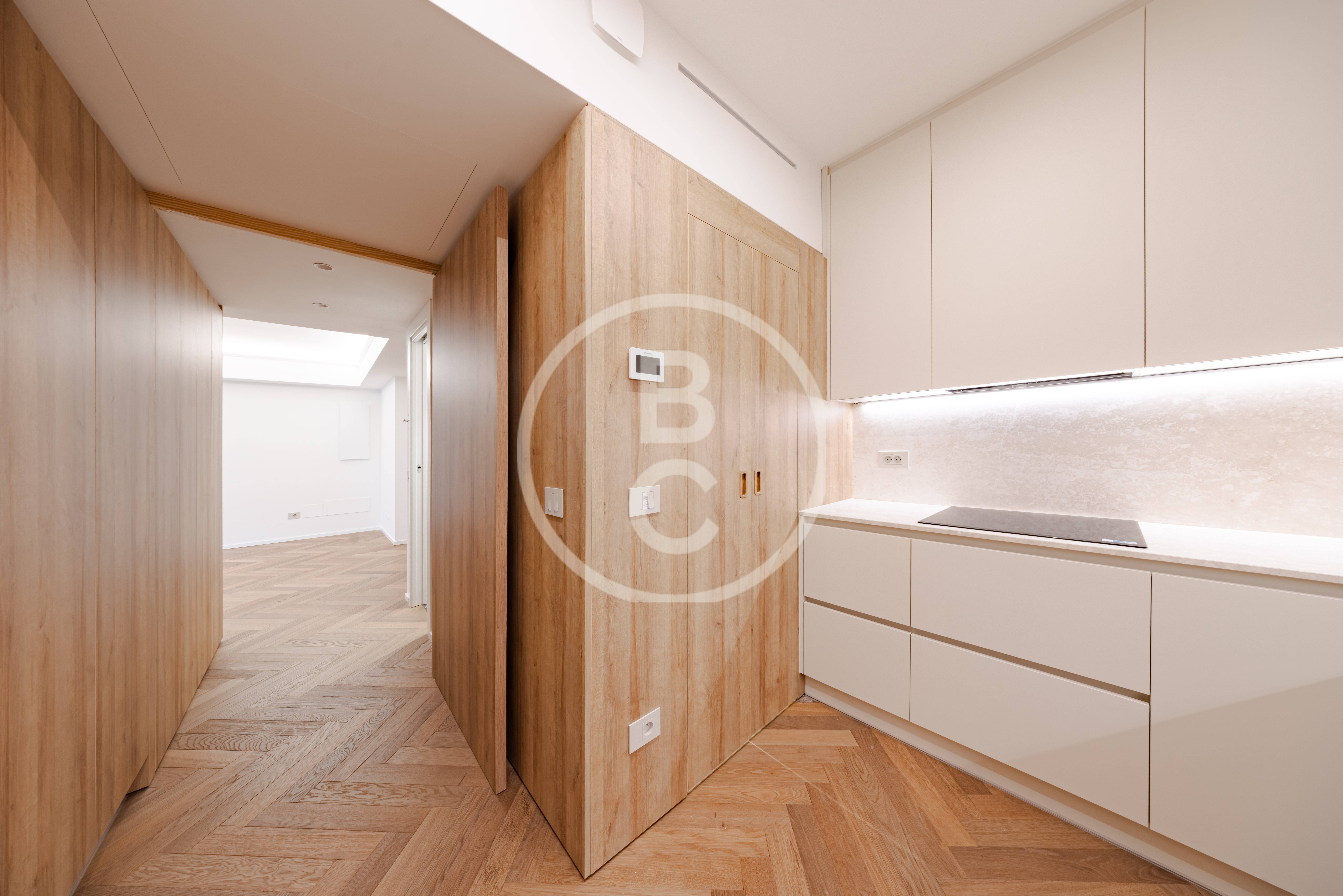 Questo ampio appartamento offre spazi generosi e una distribuzione funzionale. È composto da un ingresso con armadi a muro, una cucina completamente attrezzata, due camere da letto con due bagni e una terrazza che prolunga piacevolmente la zona giorno.
