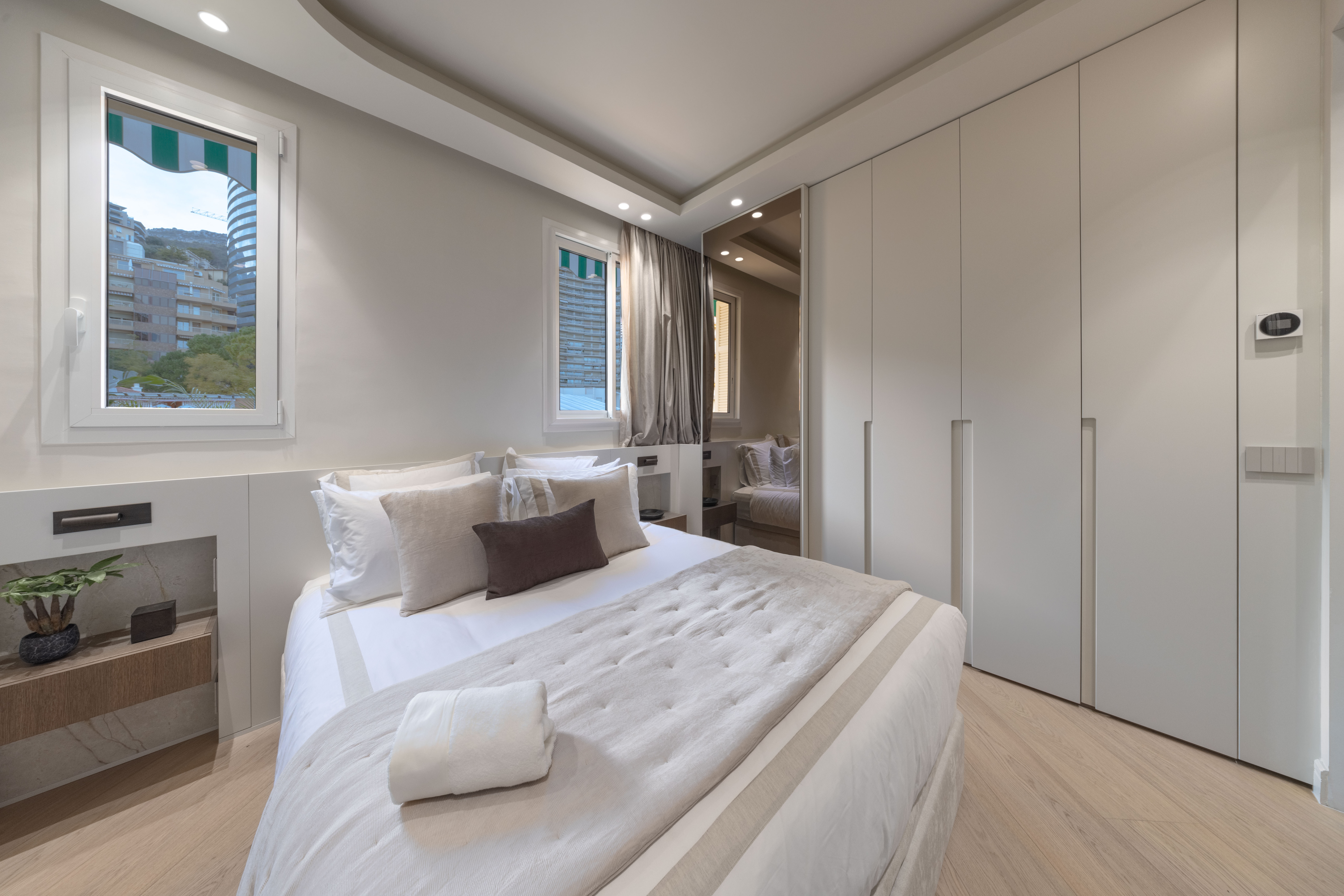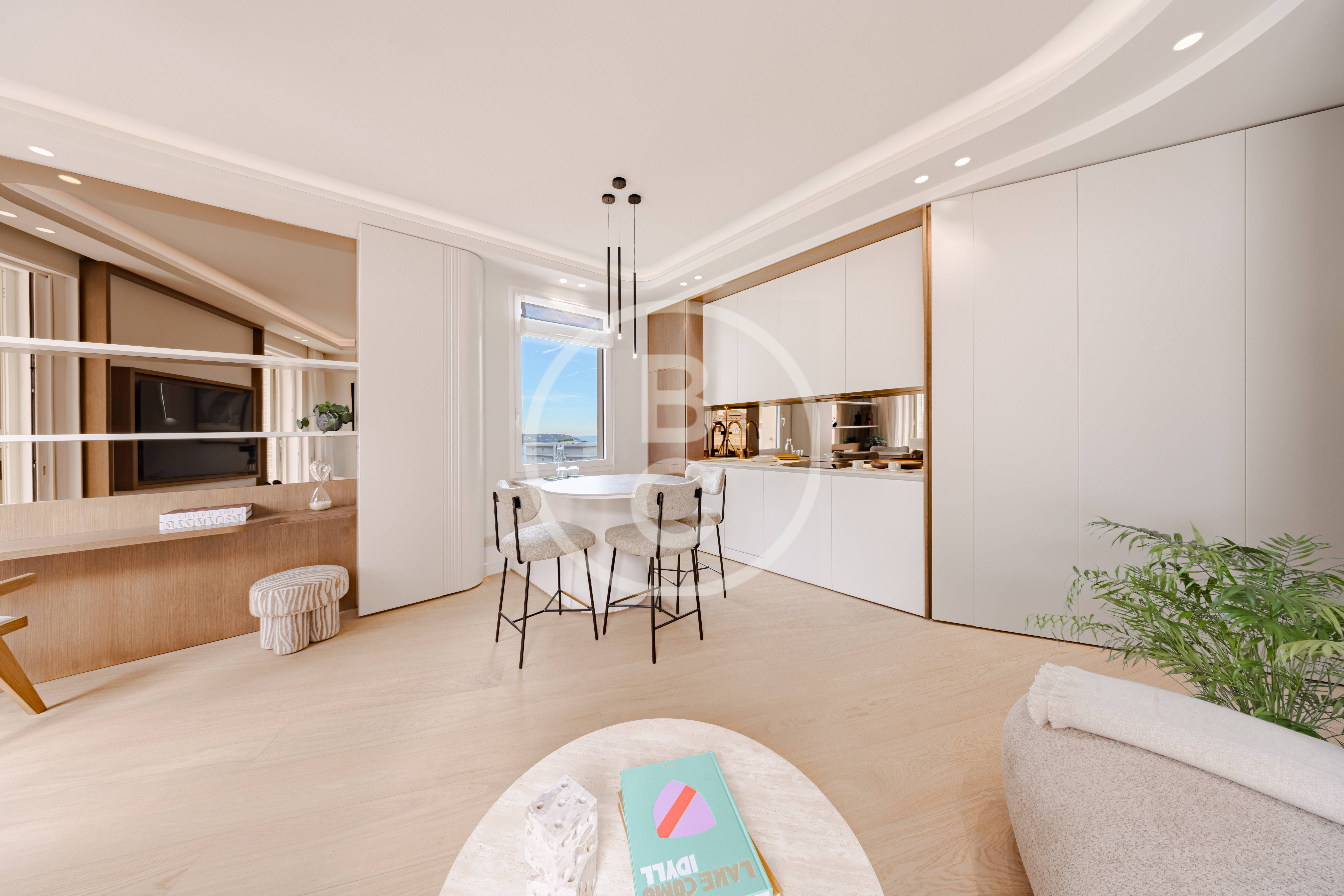 Splendido bilocale situato a un piano alto, completamente ristrutturato con materiali di qualità e venduto arredato. Si compone di un ingresso con toilette per gli ospiti che conduce a un luminoso soggiorno con cucina a vista completamente attrezzata e zona pranzo, con una splendida vista mare sulla Baia di Roquebrune. Due porte scorrevoli a scomparsa permettono di aprire completamente lo spazio su un ampio balcone arredato con zona lounge, ideale per godersi l’esterno. La camera da letto, en suite, dispone di bagno con doccia e dressing integrate. Aria condizionata reversibile indipendente.
