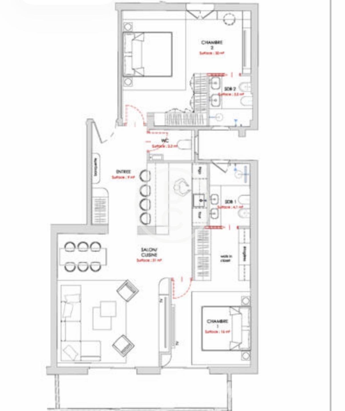 The apartment will be available from the end of 2026. The visuals presented are projections made by the architect and have no contractual value.