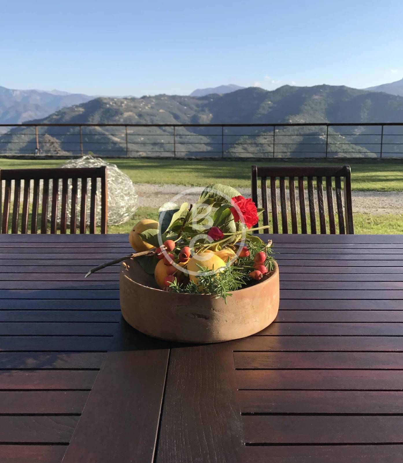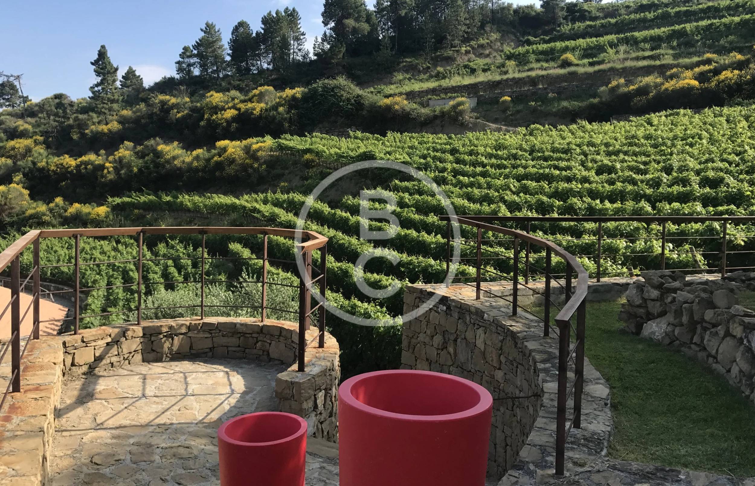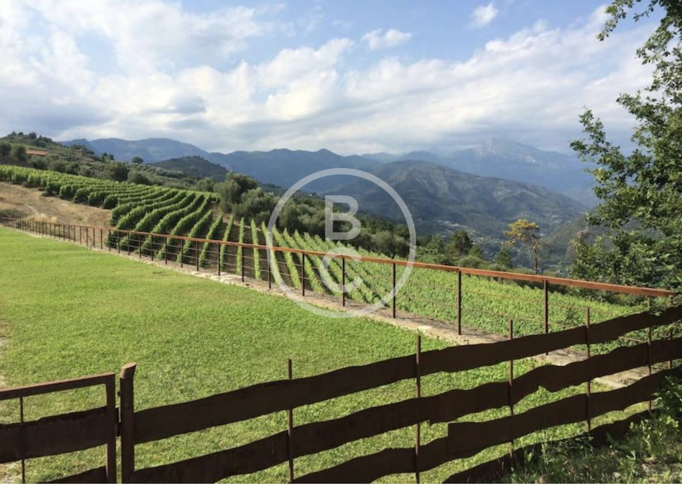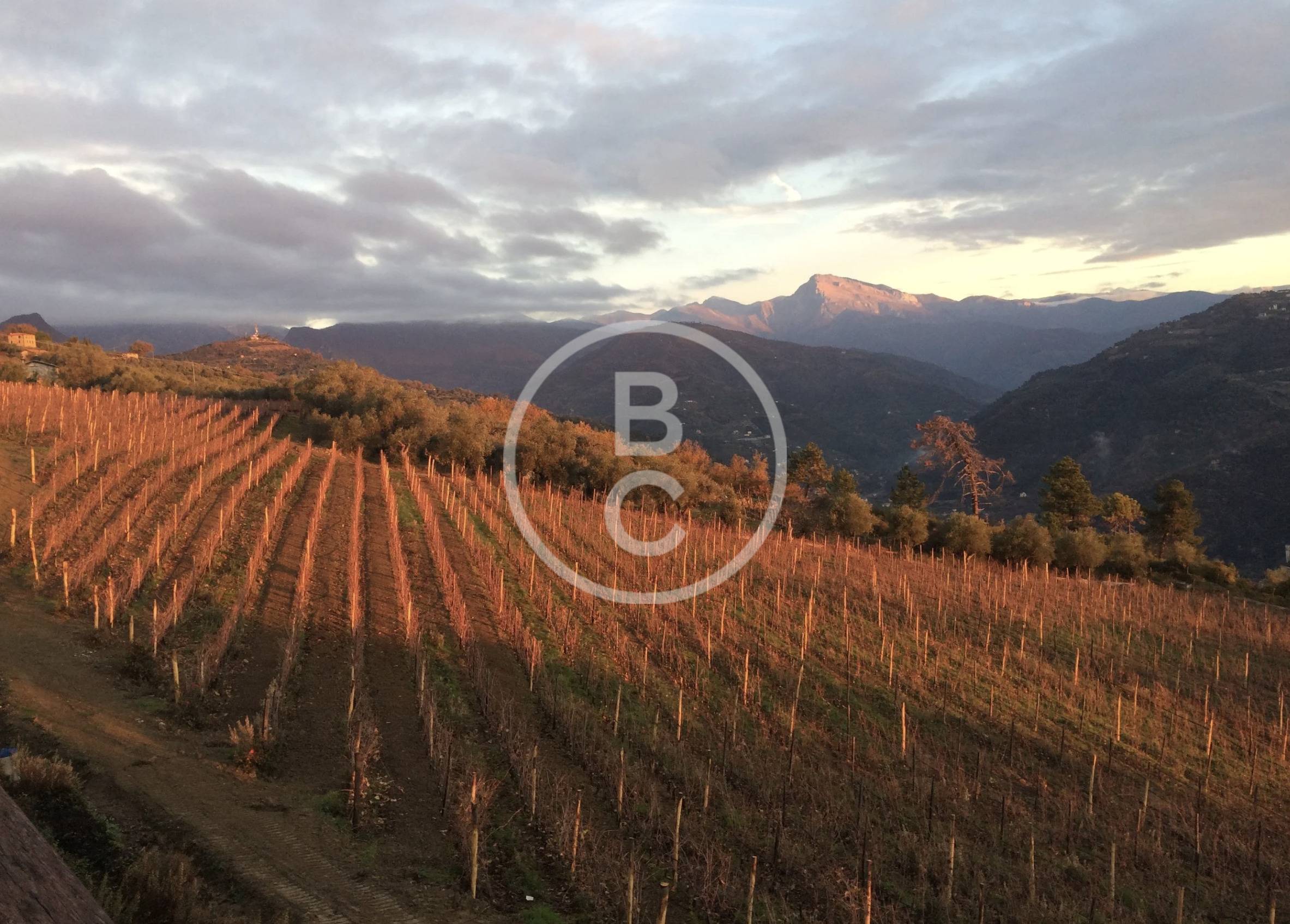 Perched atop a hill at an elevation of 1,200 feet, and protected from cold winds by the Alpes Maritimes, the vineyard spans an area of five hectares. The vines are trained according to the Guyot pruning method, typical of Rossese, a local grape variety of the region. This grape variety thrives particularly well on calcareous and rocky soils.