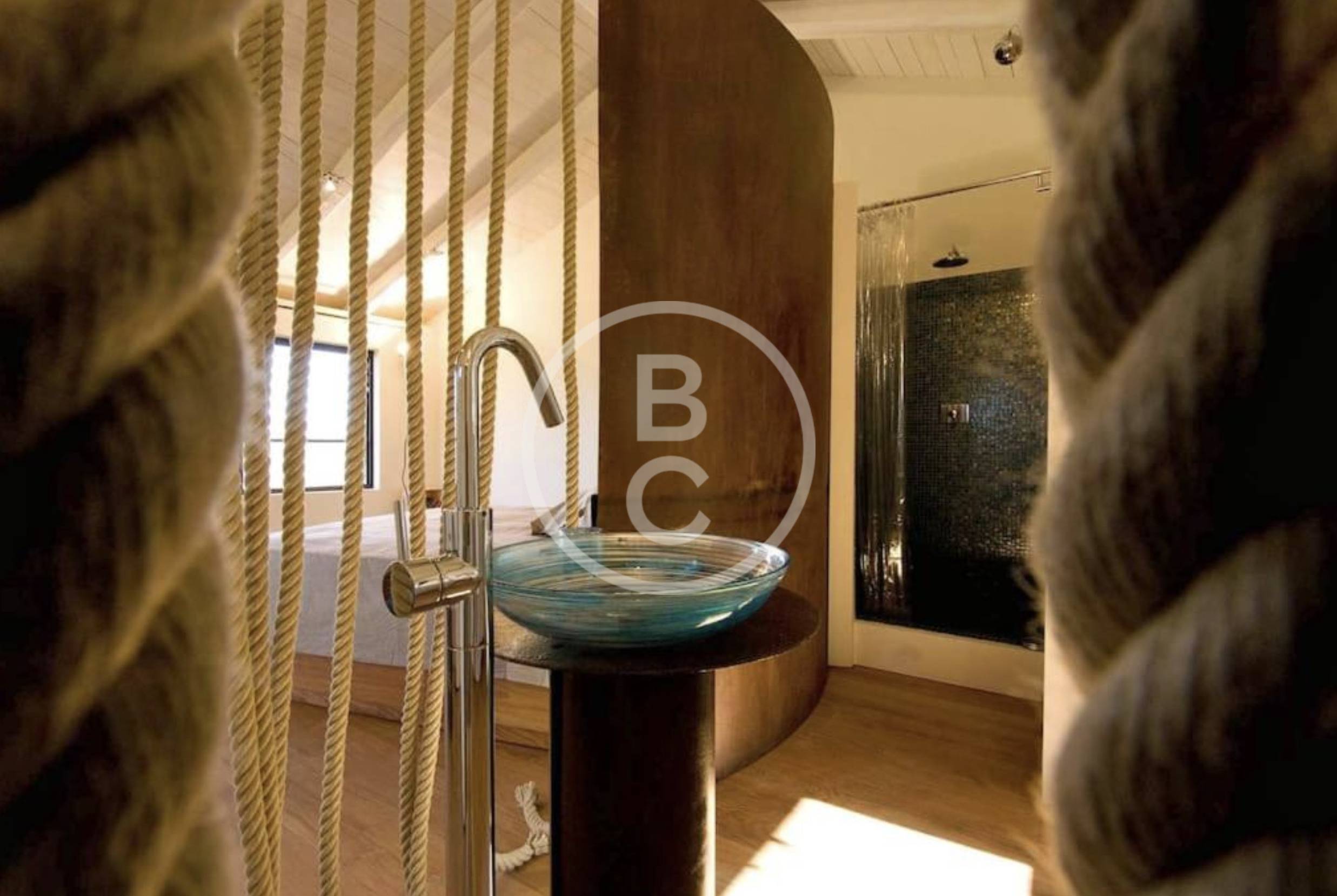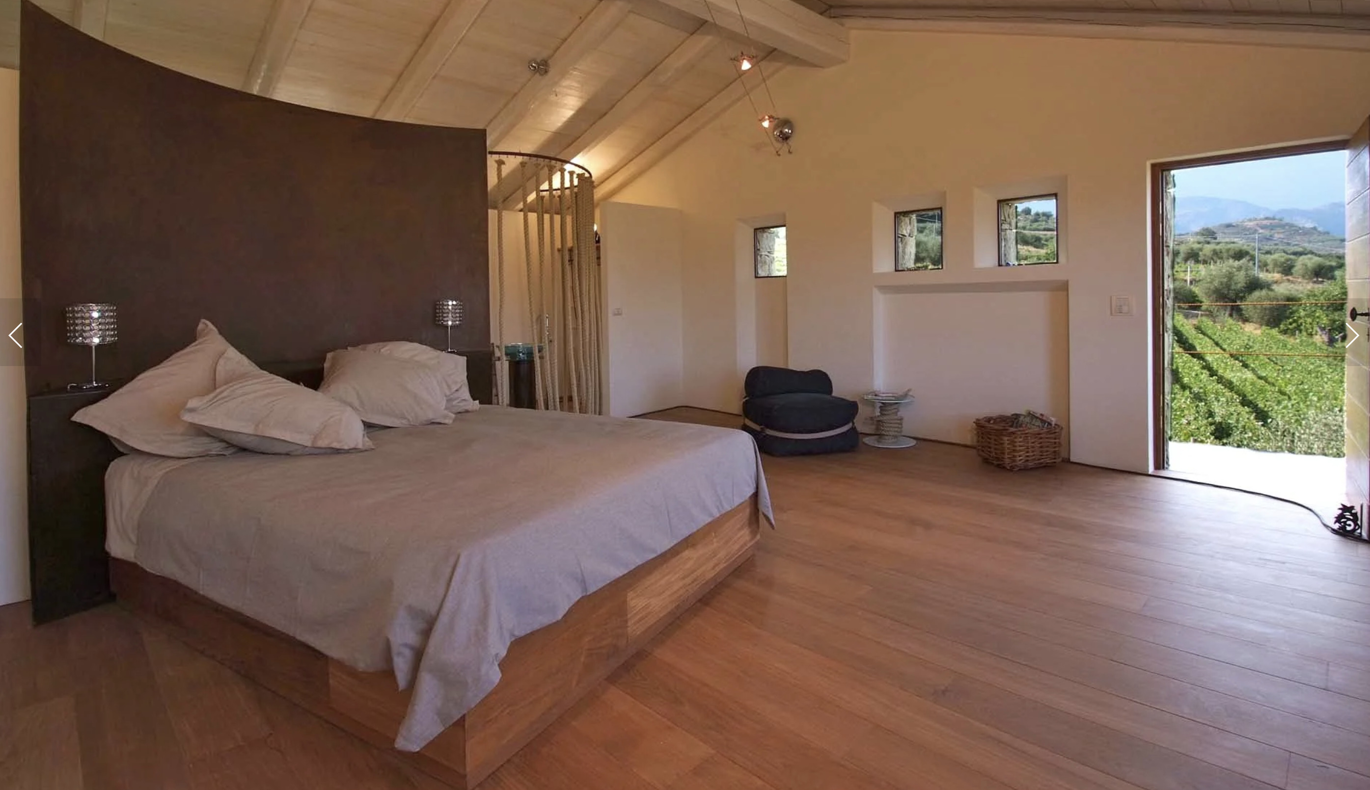 In an olive grove, surrounded by vineyards and overlooking the sea, Altavia offers its guests two magnificent stone villas that have just been completed. Inside, the furniture is simple but elegant, just like the building materials used. The wooden ceilings harmonize perfectly with the color of the stone; The patinated iron elements contrast with the modernity of the steel.