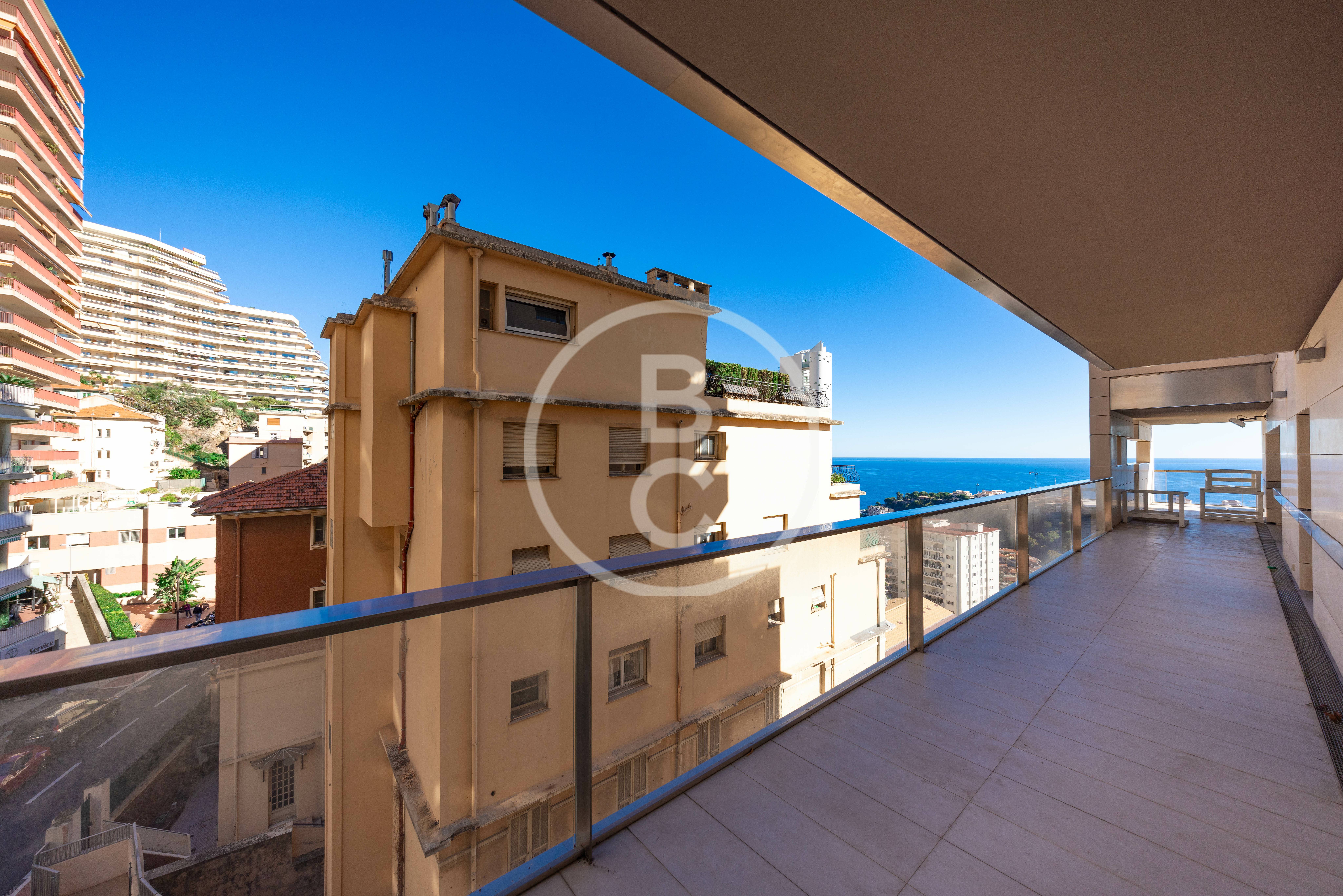 A magnificent renovated apartment with spectacular views of the Rock of Monaco and the sea.