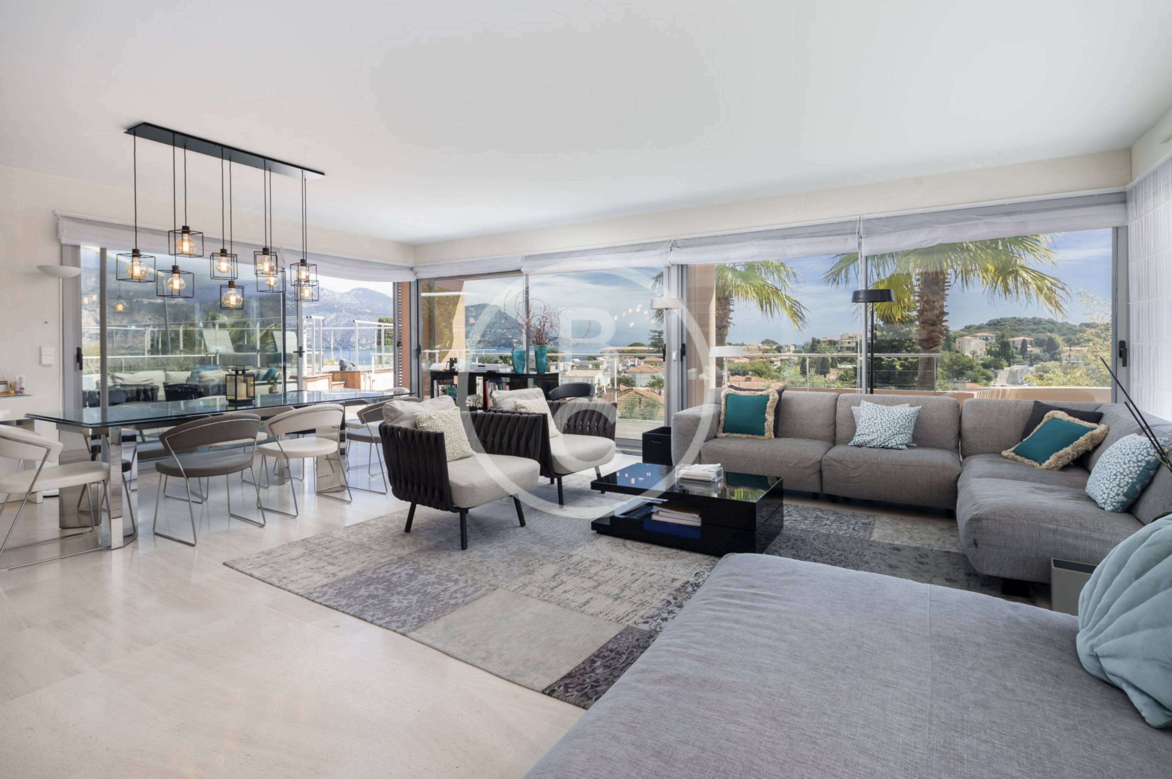 Behind the village, in a subdivision of 9 independent villas (the only one on Cap Ferrat), villa of contemporary architecture of 334 m2 with elevator, offering 3 bedrooms en suite in the main house, one bedroom in independent suite, and two independent studios with shower room and kitchen. Many terraces furnished and enjoying a breathtaking view of the whole village of St Jean and the sea. Everything is within walking distance - the beach is in front as well as the Marina, shops and restaurants, the Grand Hotel / Four Seasons is a 10 minute walk away. 6 bedrooms each with its bathroom or shower room, a wine cellar, billiard room, plenty of storage, large living / dining room and equipped kitchen and Air conditioning. All levels served by a glazed elevator. Garage for 6 cars and a heated swimming pool of 3 x 9 meters.
