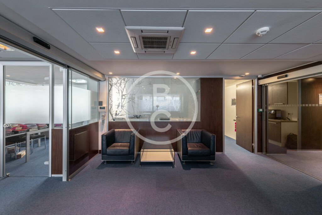 9 furnished, spacious and functional offices between 25-48m2 with large storage spaces, a common waiting area with leather armchairs, a fully equipped kitchen, three bathrooms and a shower.