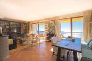 This apartment is composed of an entrance, open to a spacious living room giving access to a deep terrace, offering a spectacular view of the sea, two bedrooms, one in front, two bathrooms, a fully equipped kitchen.