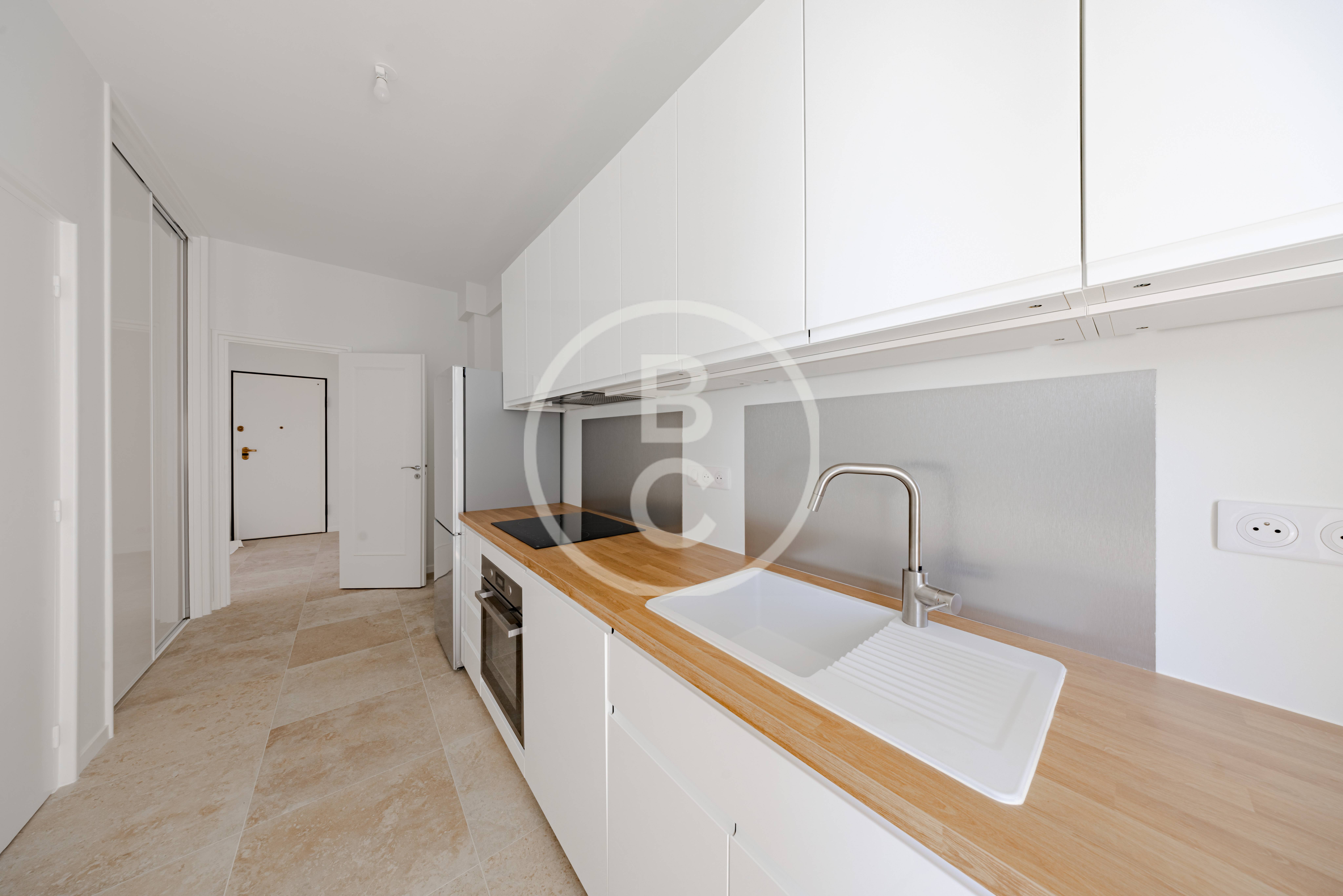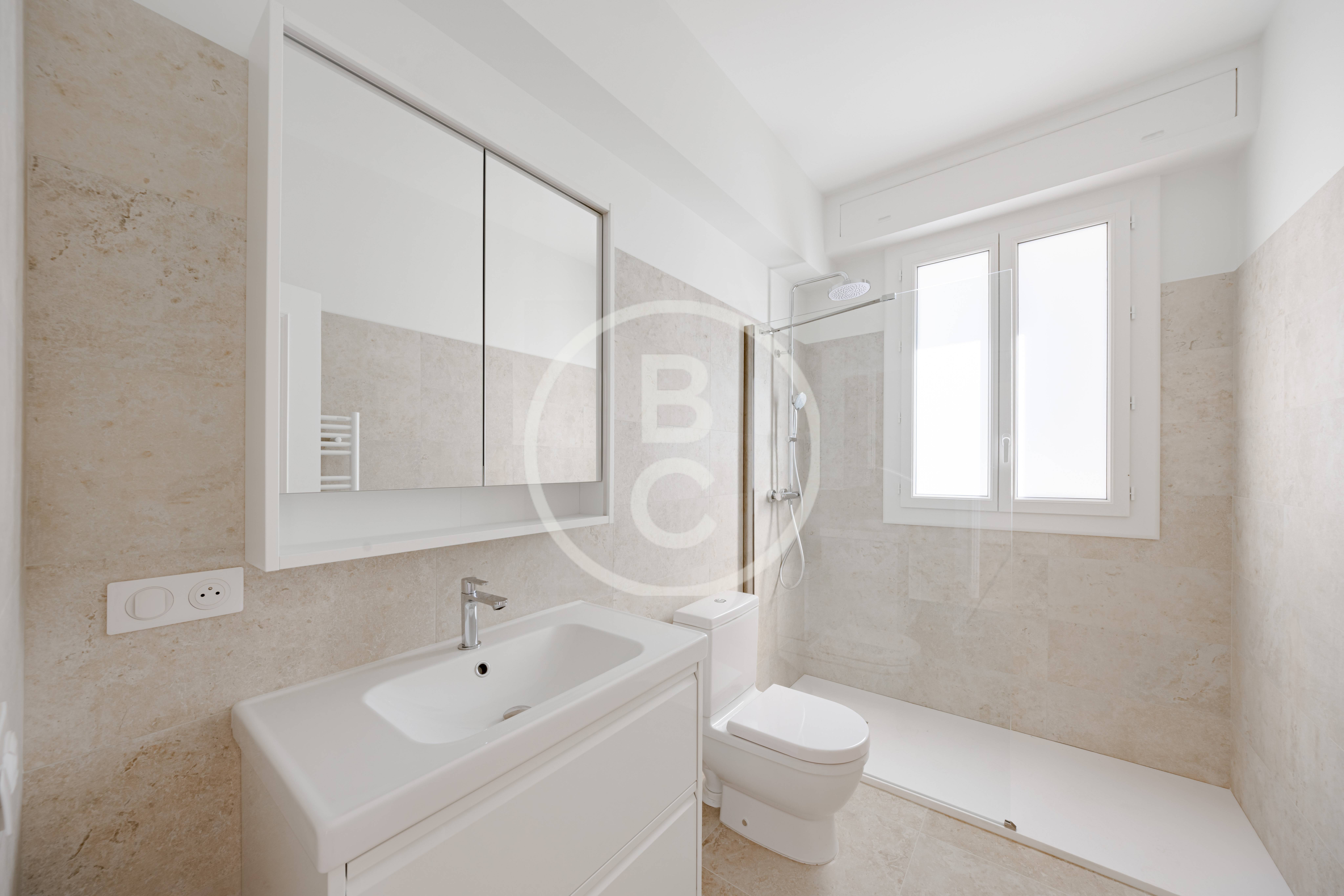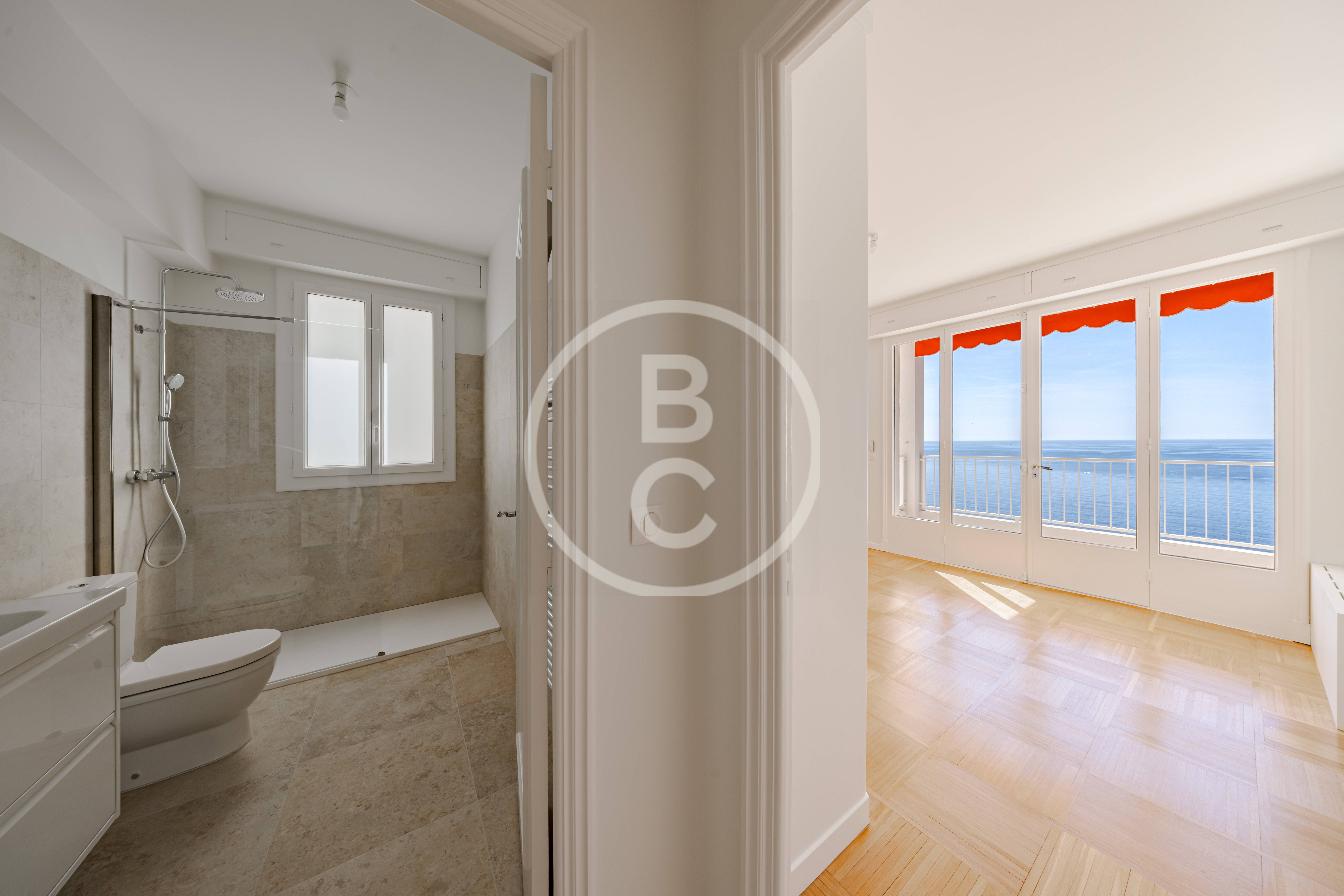 This spacious fully renovated one-bedroom apartment comprises an entrance hall, a separate kitchen, a living room opening onto a balcony, and a front-facing bedroom with access to the balcony. Both the living room and the bedroom enjoy a pleasant sea view. The apartment also features a shower room and a separate WC. A cellar in the building completes this property.